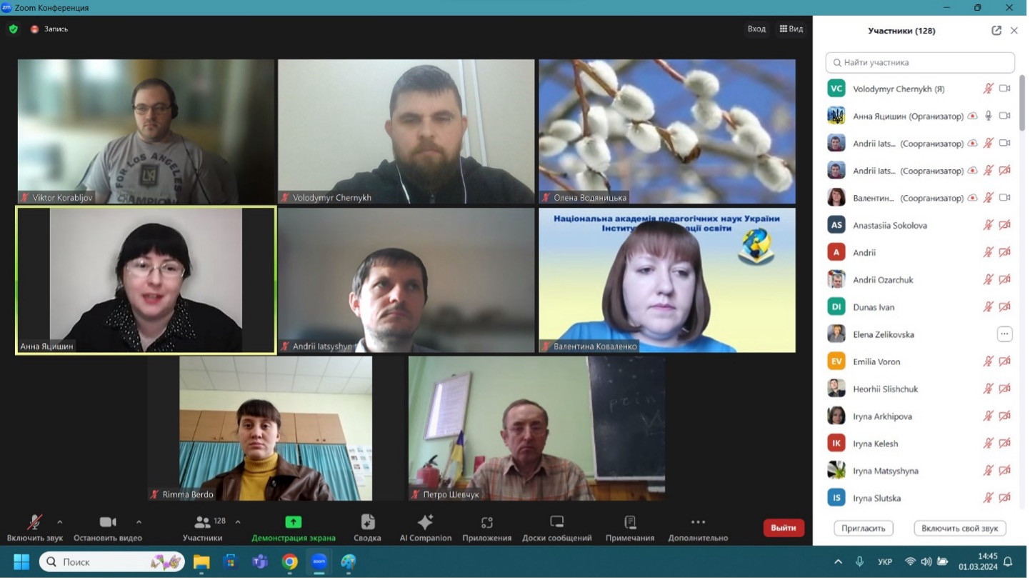Окремий напрям дослідження вливу ШІ на підготовку педагогічних кадрів та формування їх використання інструментів ШІ в підготовці майбутніх вчителів інформатики говорив Володимир ЧЕРНИХ, про можливості ШІ для підвищення адаптивних властивостей систем управління навчанням – д.тех.н., проф. Тетяна МАЗУРОК, про модель підготовки майбутніх учителів початкової школи до застосування ІКТ у навчанні молодших школярів (інтегрованих курсів) – д.пед.н., проф. Світлана СКВОРЦОВА.