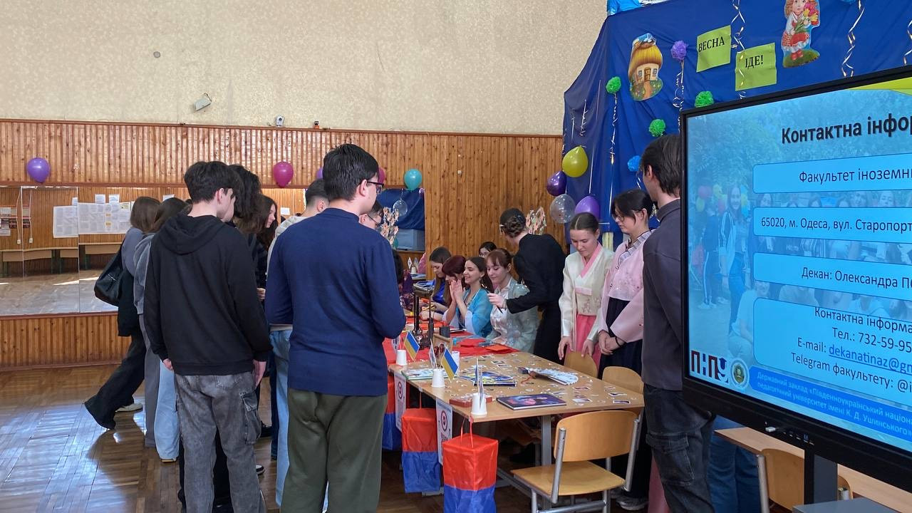 21.03.2025 р в Одеському ліцею № 73 Одеської міської ради директор Навчально-наукового інституту природничо-математичних наук, інформатики та менеджменту В. В. Ковальчук та декан факультету іноземних мов О. В. Попова провели профорієнтаційний захід, на якому було презентовано спектр актуальних спеціальностей та освітньо-професійних програм, впроваджених у Південноукраїнському національному педагогічному університеті імені Костянтина Дмитровича Ушинського.