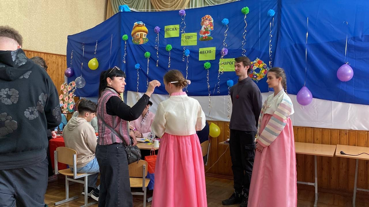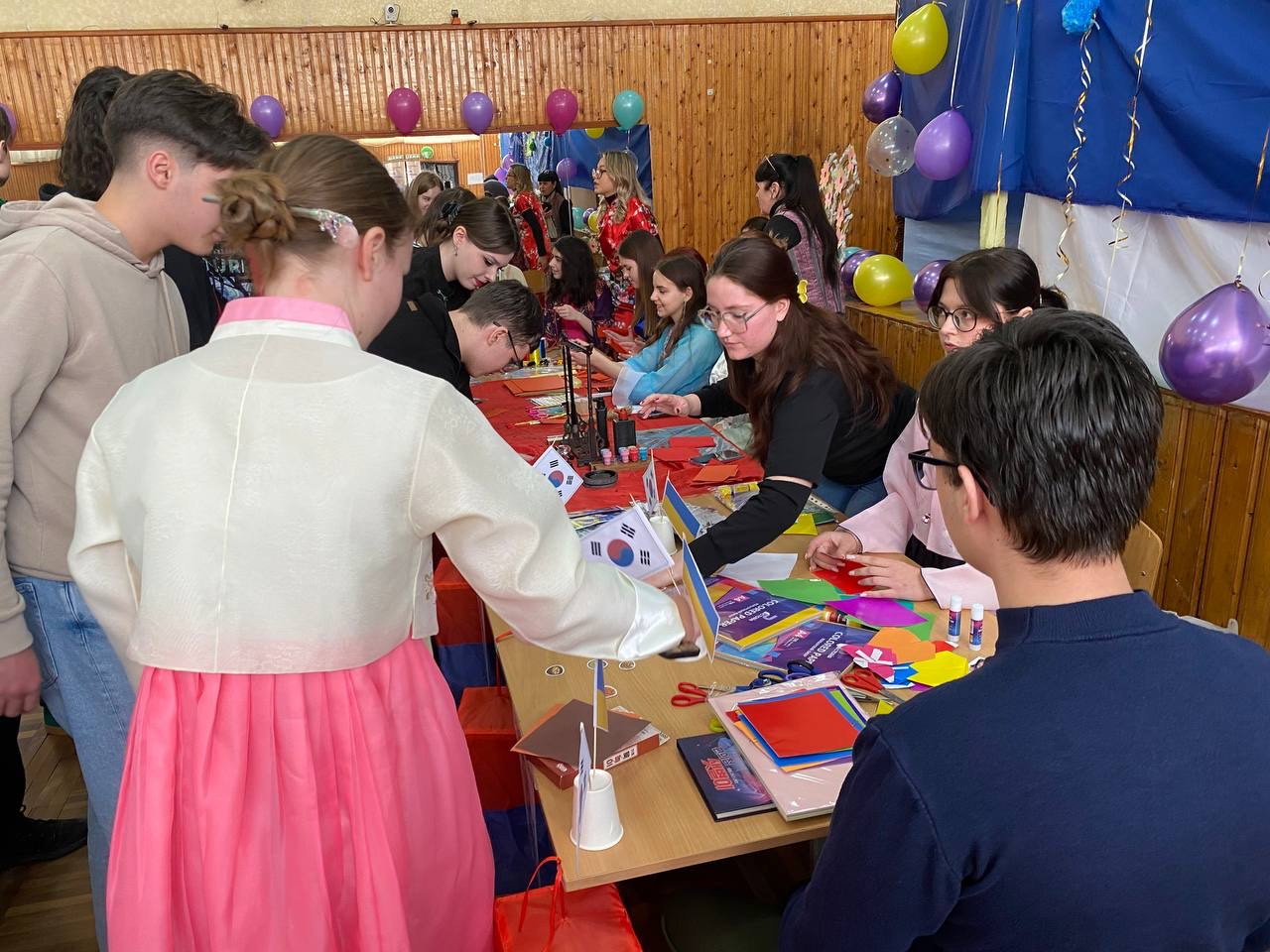Студенти корейської група провели майстер-клас з орігамі, під час якого учні власноруч виготовляли мініатюрні паперові копії традиційного корейського вбрання.