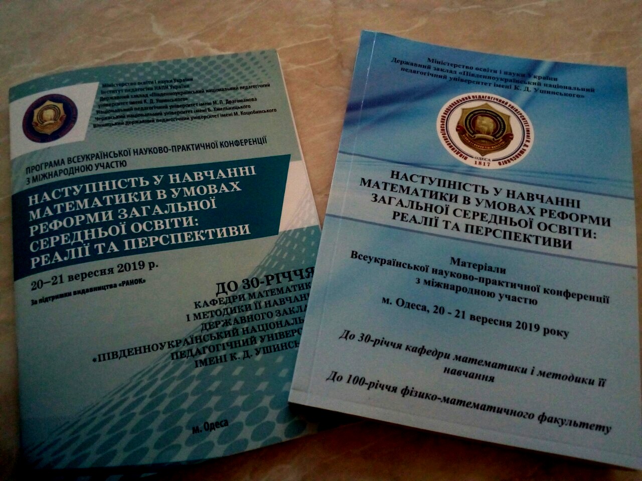 20 – 21 вересня 2019 року кафедрою математики і методики її навчання Державного закладу «Південноукраїнський національний педагогічний університет імені К. Д. Ушинського» було проведено Всеукраїнську науково-практичну конференцію з міжнародною участю «Наступність у навчанні математики в умовах реформи загальної середньої освіти: реалії та перспективи», присвячену 30-річчю кафедри математики і методики її навчання та 100-річчю фізико-математичного факультету.