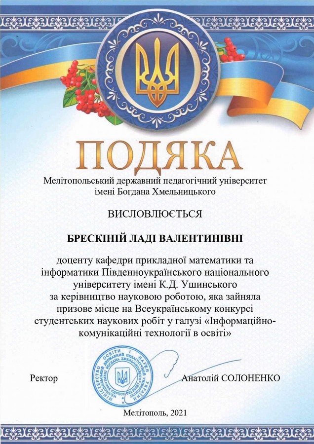 3 квітня 2020 року у Мелітопольському державному педагогічному університеті імені Богдана Хмельницького відбувся Всеукраїнський конкурс студентських наукових робіт із галузі «Інформаційно-комунікаційні технології в освіті».