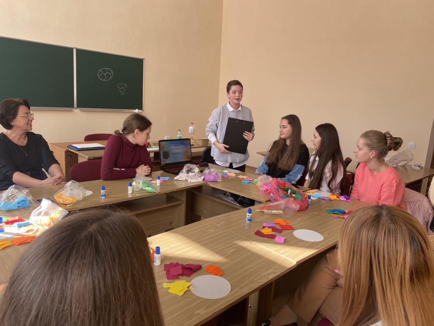 Викладачі кафедри теорії та методики дошкільної освіти дбають про те, щоб студенти були обізнані із сучасними, практичними методами розвитку творчих здібностей дітей дошкільного віку. З цією метою, здобувачі другого (магістерського) рівня спеціальності 012 «Дошкільна освіта» Марина Кочкаренко та Аліна Руса провели майстер-клас «Арт-терапевтичні техніки в роботі з дітьми дошкільного віку». Учасниками майстер-класу були здобувачі першого (бакалаврського) та другого (магістерського) рівнів вищої освіти.