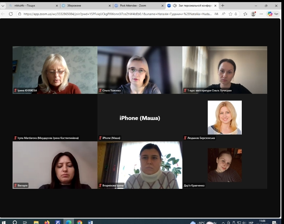 Гарант ОПП, Постоян Т.Г. наголосила, що обговорення та узгодження ключових завдань асистентської практики з роботодавцями є визначальним у контексті присвоєння професійної кваліфікації «Викладач закладу вищої освіти - педагогічний працівник», що відбуватиметься за відповідною процедурою по завершенню професійної підготовки за ОПП «Дошкільна освіта. Управління ЗДО».