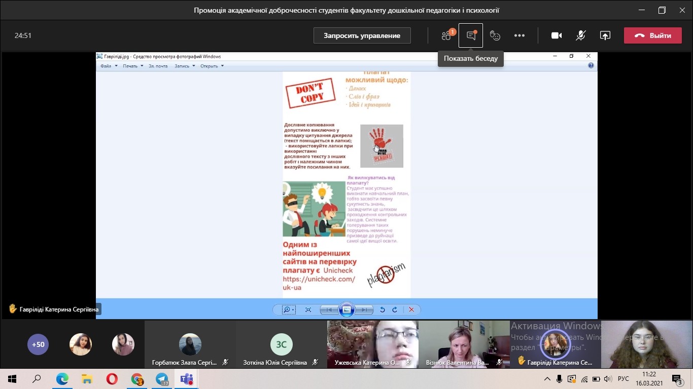 Під час промоції студентки демонстрували інфографіки, особливу увагу звернули на необхідність авторської думки в дослідницькій роботі та надали поради іншим здобувачам освіти щодо запобігання академічному плагіату.