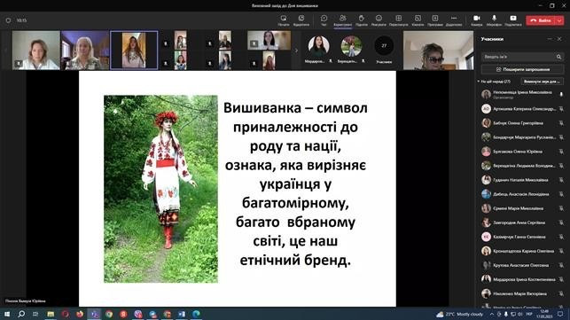 До Дня вишиванки на платформі teams для здобувачив освіти першого (бакалаврського) рівня 1-4 курсів було проведено патріотично-виховний захід. День вишиванки відносно нове народне свято, але у наш час саме це свято набуває ще більшої значущості.