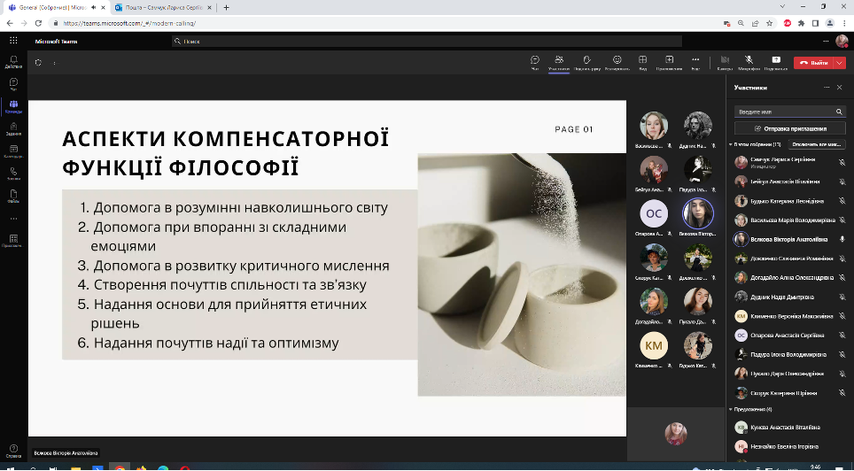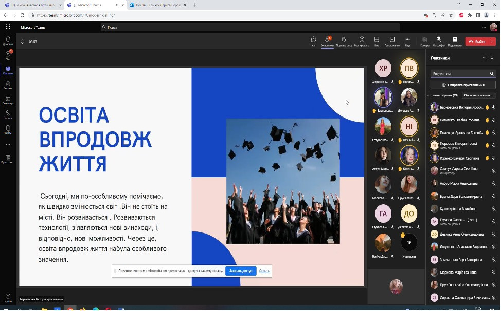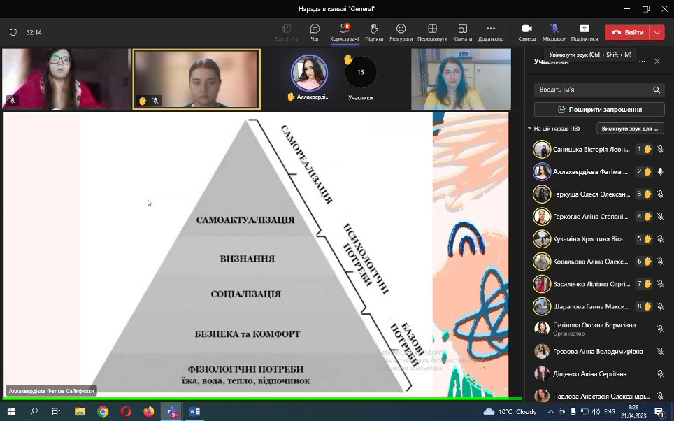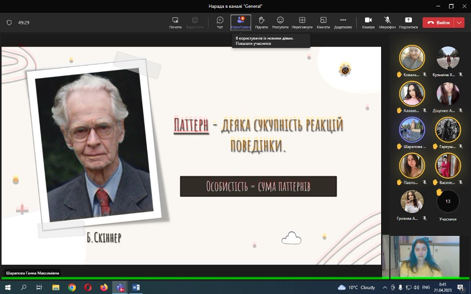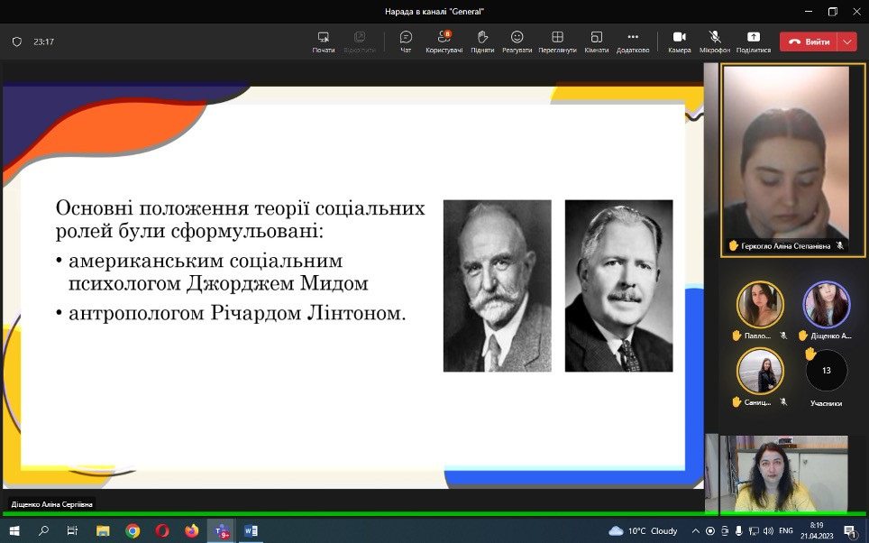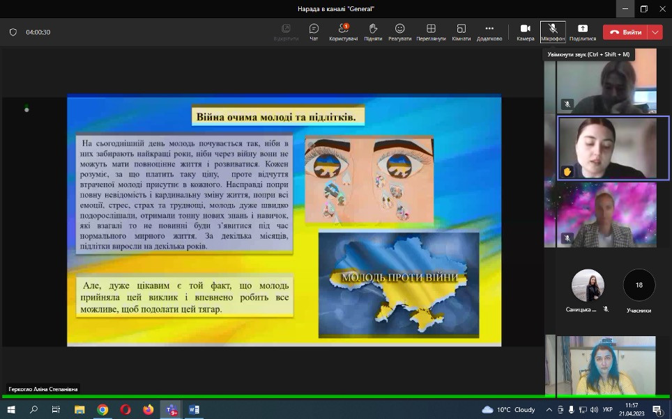 Проф. Борінштейн керував секцією «Стан та проблеми реформування системи української освіти»; Доц. Атаманюк З. М. проводила секцію змішаної форми з онлайн включеннями технічними засобами кафедри філософії, соціології та менеджменту соціокультурної діяльності «Соціальна адаптація особистості в умовах суспільних трансформацій». Виступили доц. Атаманюк З. М., доц. Поплавська Т.М., асп. Парадюк О., здобувачі освіти спеціальності 024 Хореографія. До роботи конференції долучилася викладач Самчук Л. С. зі здобувачами освіти. Проф. Петінова О. Б. та доц. Врайт Г. Я. – активно обговорювали на засіданні секції питання ролі молоді в освітньому просторі, механізми соціалізації та самореалізації. У конференції взяли активну участь здобувачі освіти соціально-гуманітарного факультету, музичної та хореографічної освіти, початкового навчання, інституту фізичної культури, спорту та реабілітації.