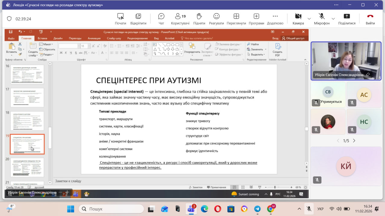 11 лютого 2026 року на платформі Teams відбулася надзвичайно цікава та змістовна онлайн-зустріч із випускницею освітньо-професійної програми «Прикладна та практична психологія», а нині аспіранткою за спеціальністю 053 Психологія Університету Ушинського Євгенією УБІРІЄЮ, яка наразі працює клінічним психологом, завідувачкою психолого-педагогічного відділення ООБФРДІ «Майбутнє» (Дитячий реабілітаційний центр імені Бориса Літвака). Тема розмови – «Сучасні погляди на розлади спектру аутизму (РСА)» викликала неабиякий резонанс серед студентів та викладачів.
