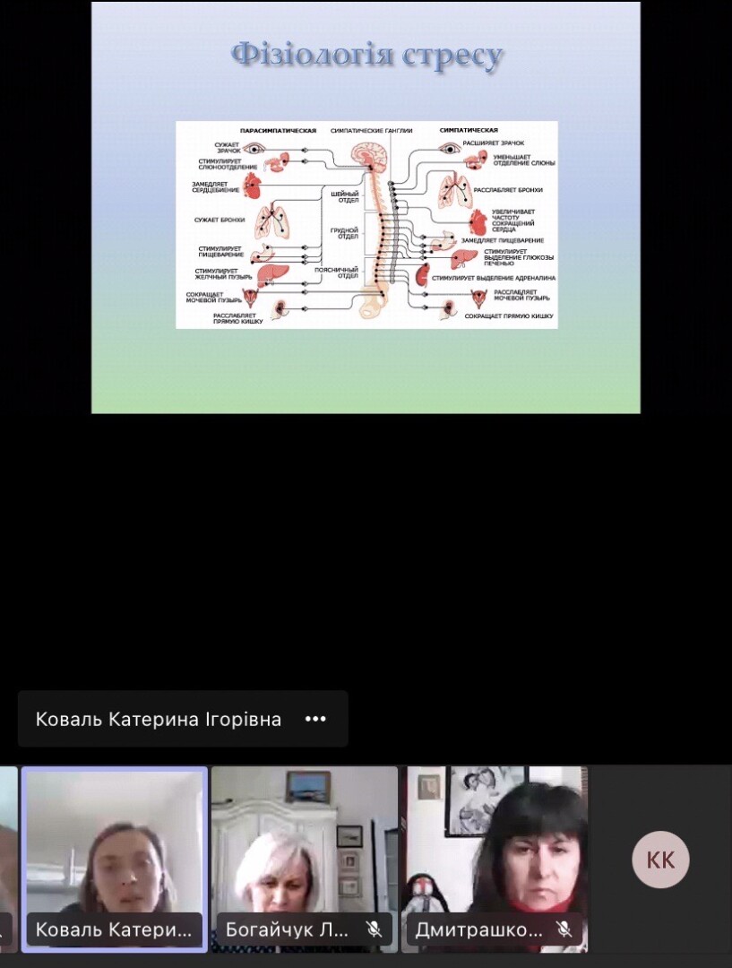 В роботі онлайн-семінару взяли участь понад 100 осіб, які дізналися про ознаки стресу та опанували техніки самодопомоги («Заземлення, «Дихання», «Обійми метелика» та ін.), які стануть в нагоді кожному освітянину в роботі та повсякденному житті.