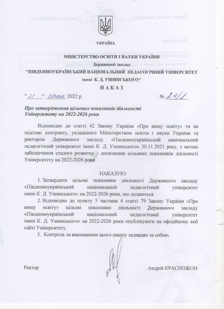 - Наказ Про затвердження цільових показників діяльності Університету на 2022-2026 роки.