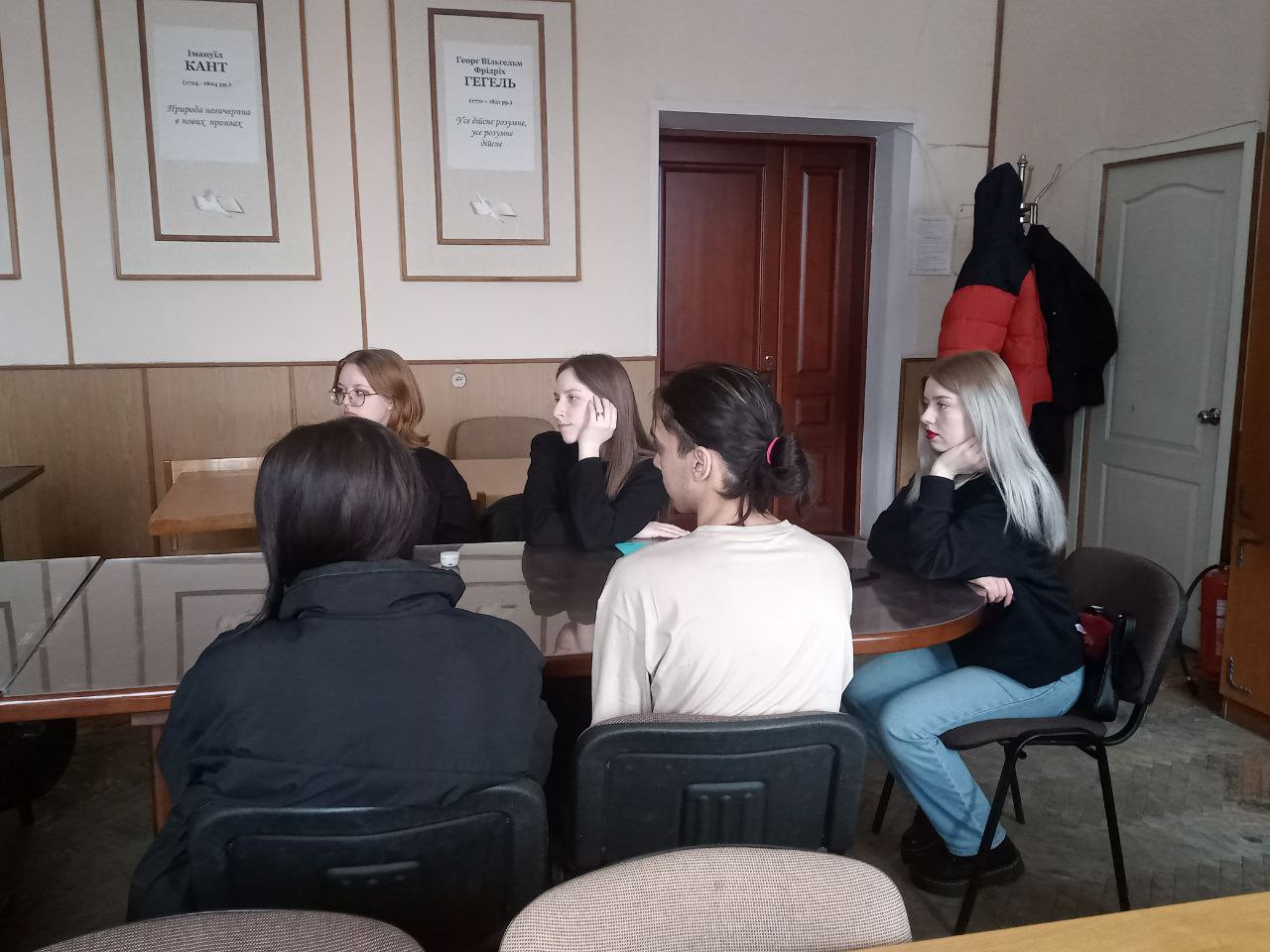 The students prepared interesting presentations. Using the example of a discussion about the film "The Age of Adaline", they discussed the values of life and the importance of immortality as an ideal. Unfortunately, an Airborne Alert was declared during the discussion. Therefore, the discussion was continued already in the bomb shelter. The students demonstrated extensive erudition and clear commitment to the values of freedom, the desire to build a moral society. The discussion was followed by a quiz.