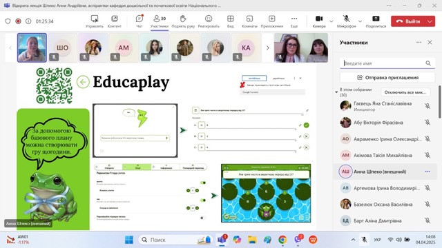 Anna Andriivna Shpeko, a postgraduate student of the Department of Preschool and Primary Education of the National University "Chernihiv Collegium" named after T. G. Shevchenko, who works under the scientific supervision of Doctor of Pedagogical Sciences, Professor Svitlana Ivanivna Strylets, the Dean of the Faculty of Preschool, Primary Education and Arts of the National University "Chernihiv Collegium" named after T. G. Shevchenko, shared her experience and innovative approaches. The lecturer presented a selection of digital resources with gamification elements that significantly improve students' engagement in the learning process and stimulate their cognitive activity. Of particular interest were practical demonstrations of the use of:
