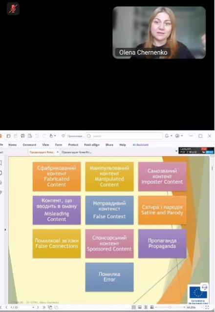 On April 9, 2025, students of Ushynsky University, studying in the educational programs "Management of an Educational Institution" and "Public Management and Administration", under the leadership of Associate Professor of the Department of Educational Management and Public Administration Tetyana Grzybovska, took an active part in an online event on the topic "The Right to Freedom of Expression and Information, Combating Illegal Harmful Content, Disinformation in the Digital Space".