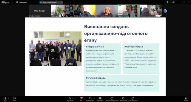 On May 13, 2025, at a meeting of the Scientific and Methodological Commission for Innovation Activities in the Sector of Preschool, General Secondary, Vocational, and Extracurricular Education and Education of the Scientific and Methodological Council of the Ministry of Education and Science of Ukraine, a report was presented on the completion of the I-st (organizational and preparatory) stage of the implementation of the all-Ukrainian innovative educational project “Robotics Design System in Computer Science Lessons in Basic Schools” based on general secondary education institutions of Odesa region (September 2024 - June 2025). The representatives of the Ministry, scientific institutions and educational institutions joined the discussion. The scientific director of the project, Professor Tetyana Leonidivna Mazurok, Head of the Department of Applied Mathematics and Informatics of the Educational and Scientific Institute of Natural and Mathematical Sciences, Informatics and Management at South Ukrainian National Pedagogical University anmed after K.D. Ushynsky, presented the results of the organizational and preparatory stage. In her speech, she outlined: