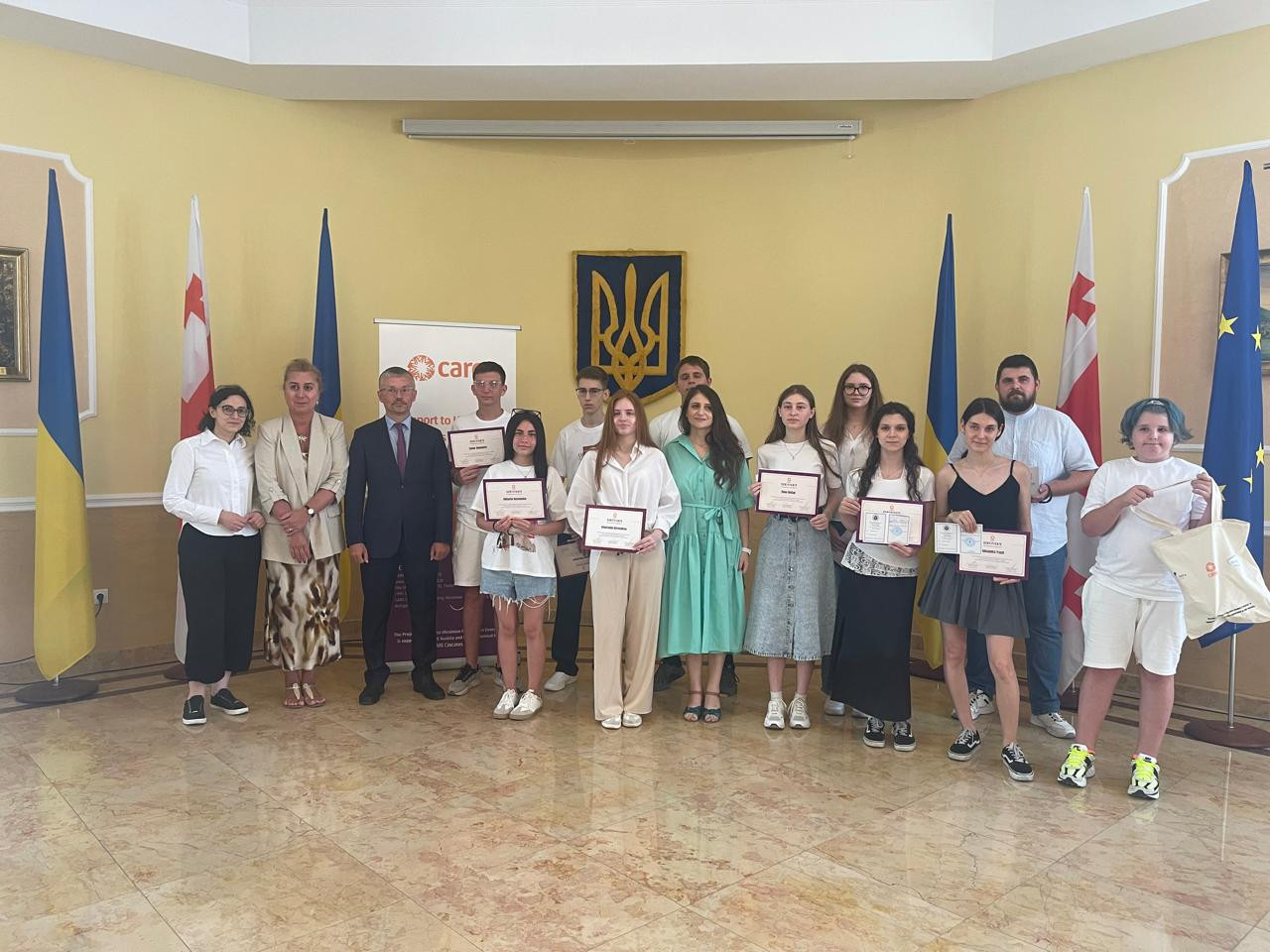 All students received Certificates of Participation from CARE Caucasus, Certificates of Completion of Courses from Ushynsky University, as well as memorable gifts that became symbols not only of success, but also of faith in the future.