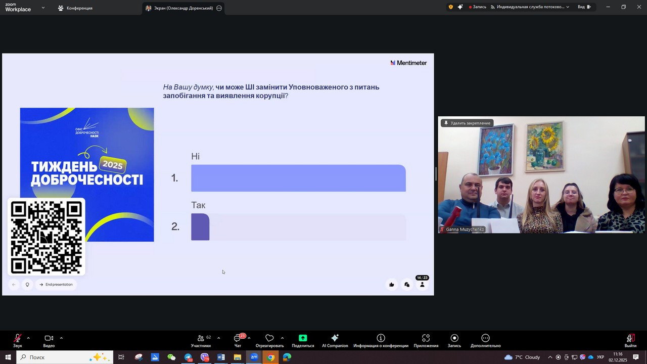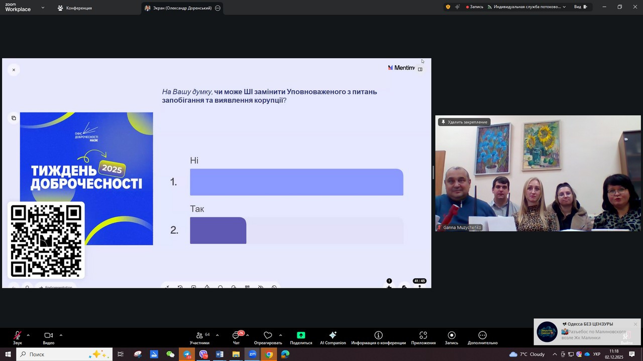 The Academic Integrity Promotion Group and the library of the state institution "South Ukrainian National Pedagogical University named after K. D. Ushynsky" took part in a two-day online lecture "Integrity and Anti-Corruption: Awareness, Responsibility, Example", organized by the Integrity Office of the National Agency for the Prevention of Corruption.