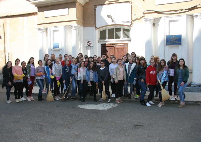 April 20, 2019, student activists and the staff of South Ukrainian National Pedagogical University named after K. D. Ushynsky took part in activities aimed at bringing the proper sanitary condition, cleaning and improvement of the territory adjacent to educational buildings and dormitories. Students and teachers from nearly all faculties and institutes have not remained indifferent and have made a good contribution to the preservation of the environment, as well as the organization of training facilities and workplaces.
