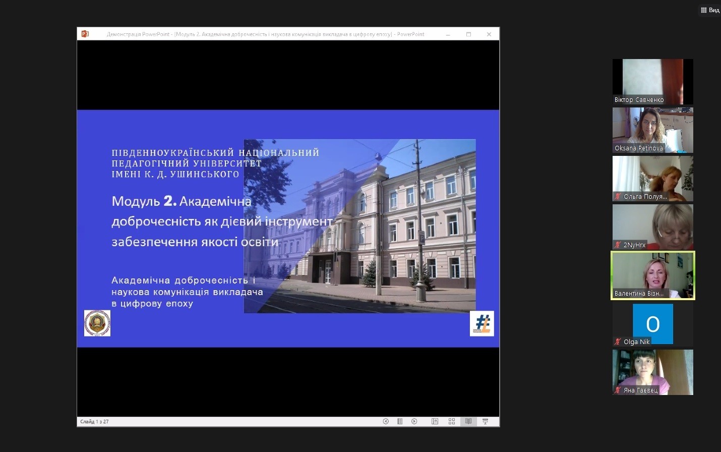 During August-September 2020, South Ukrainian National Pedagogical University named after K.D. Ushynsky held advanced training courses under the program "Academic integrity and scientific communication of teachers in the digital age" in the amount of 90 hours (3 ECTS credits), organized by the Regional Information resource center for professional development of managers and specialists in the field of socionomics and the Library of Ushynsky University.