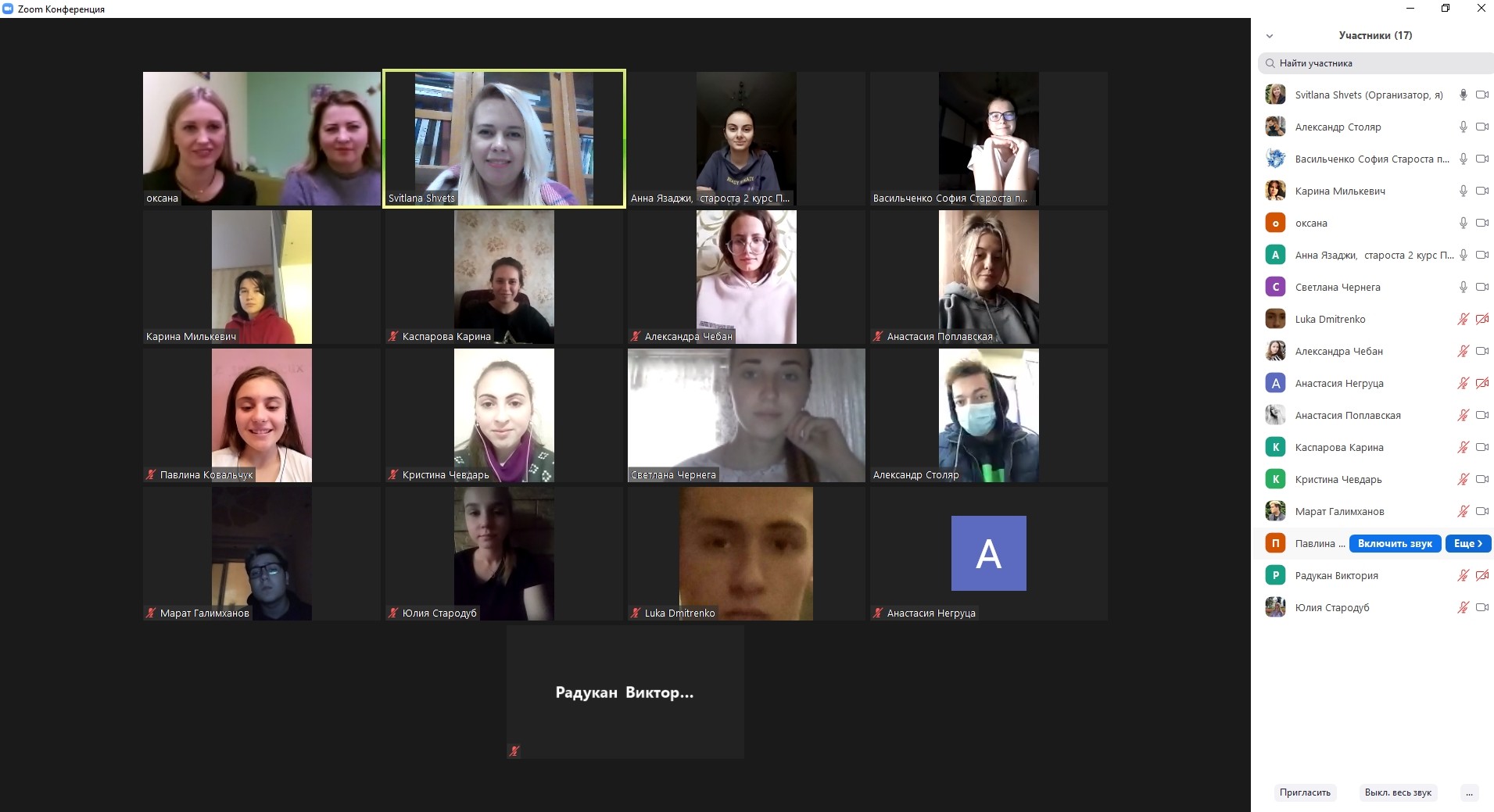 On November 20, 2020, the Department of Political Science and Law organized an online meeting of the 1st and 2nd year students majoring in 081 Law with representatives of the Juvenile Probation Center. The Head of the Center I.V. Buyanovska presented to the students the activities of the Center, the specifics of its work, the role of the Center in the prevention and prevention of juvenile delinquency. The practical psychologist of the Center told about the psychological features of adolescence and the main reasons for committing crimes. Students became interested in the activities of the Center's volunteers and the organization of their work, and some of them expressed a desire to try themselves as a probation volunteer.