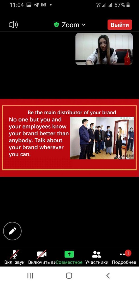 On May 7, 2021, an interactive lecture on "Philosophy of Branding" was held within the framework of remote international academic mobility. The lecturer was K.V. Tkachenko, Ph.D., university lecturer of Anhui University of Finance and Economics, manager of work with foreign citizens. The class was attended by graduate students majoring in 033 "Philosophy", 015 "Professional Education", 014 "Secondary Education (Music)", 053 "Psychology", 052 "Political Science", 035 "Philology"; undergraduates and students majoring in 033 "Philosophy", students majoring in 028 "Management of socio-cultural activities", 034 "Culturology".