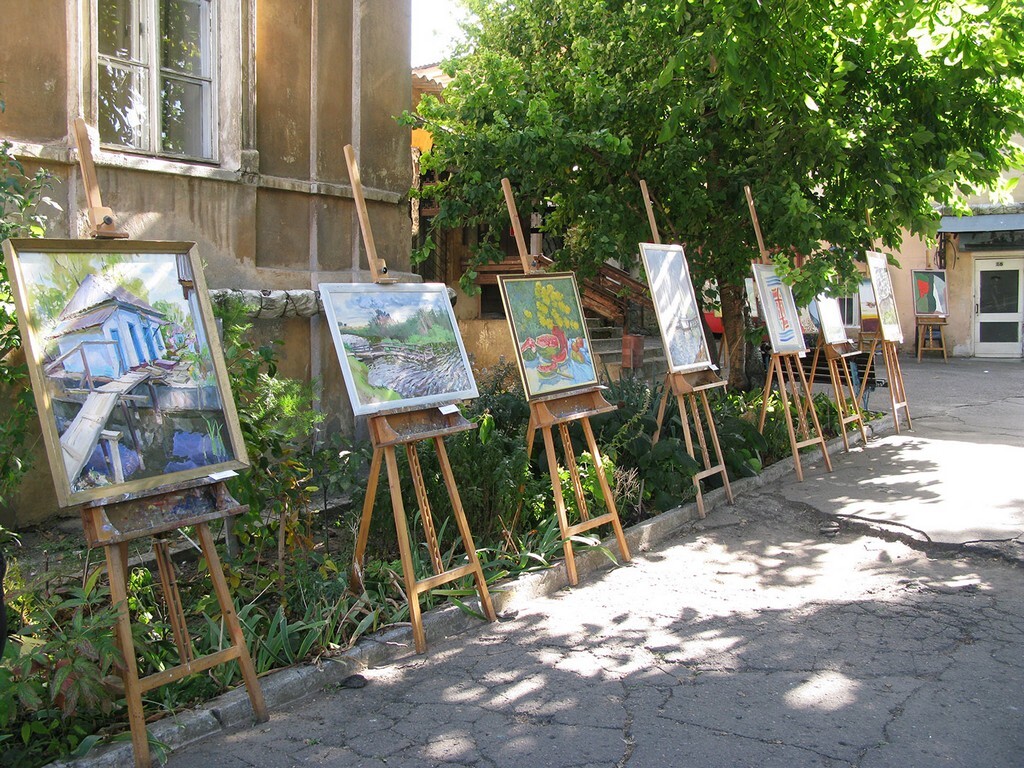 In the courtyard of the faculty, teachers presented their own works: painting, decorative arts, sculpture.