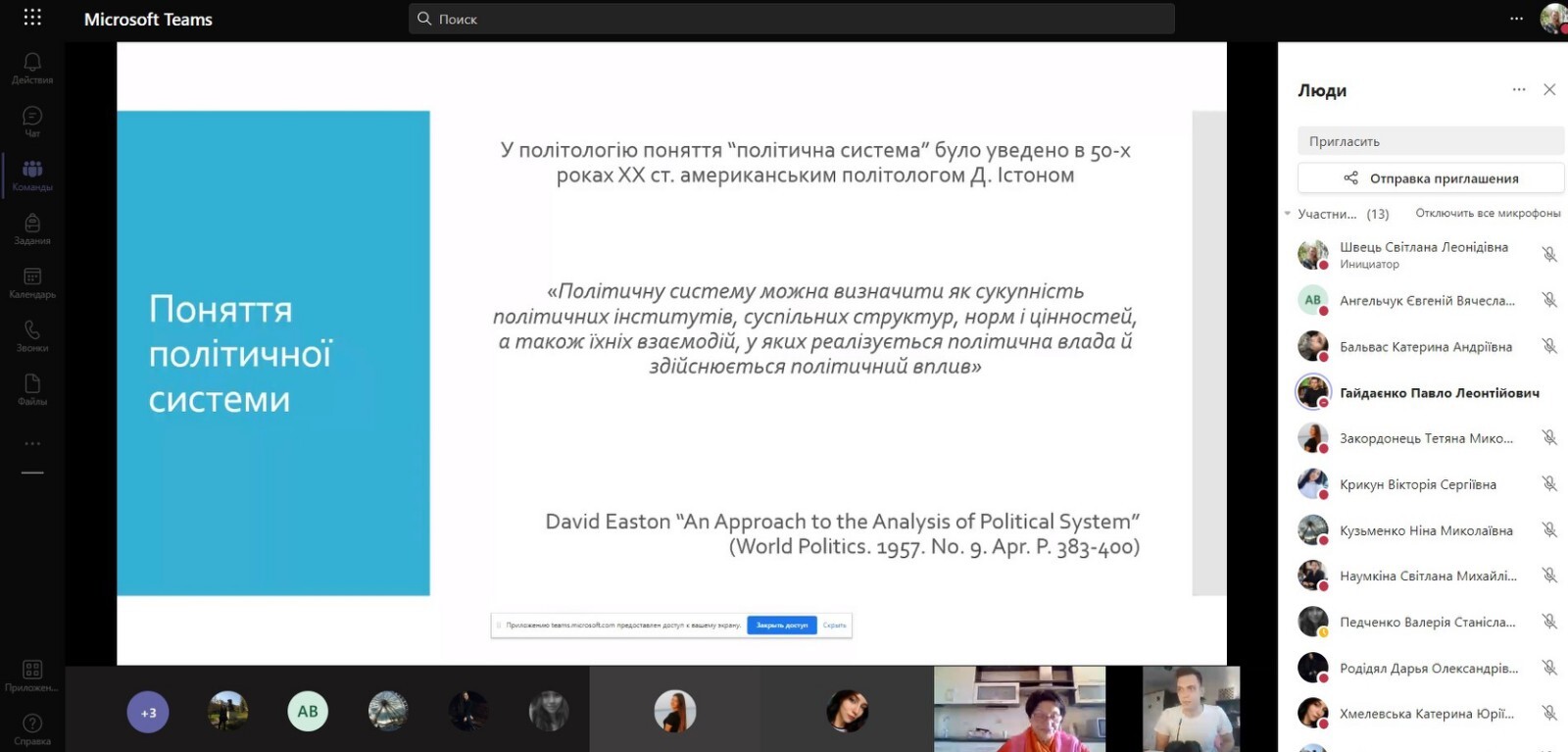 On March 28, 2022, Gaidaenko P.L., a postgraduate student of the second year of the ESP "Political Science", gave a lecture on "Political Science" for the 3rd year students majoring in 014