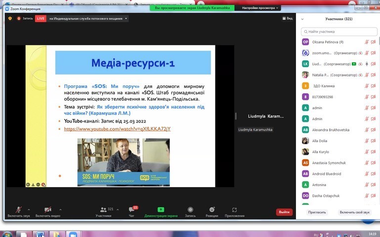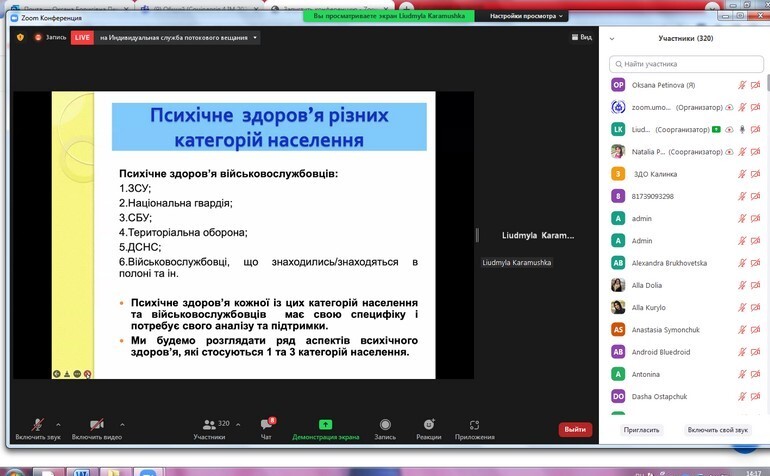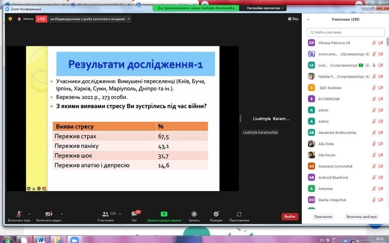 On April 13, 2022, research and teaching staff and postgraduate students of the Department of Philosophy, Sociology and Management of Socio-Cultural Activities took part in the international webinar "Psychological support of the individual in war" (Ukraine - Poland).