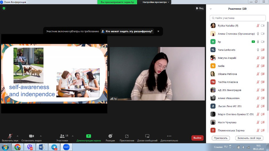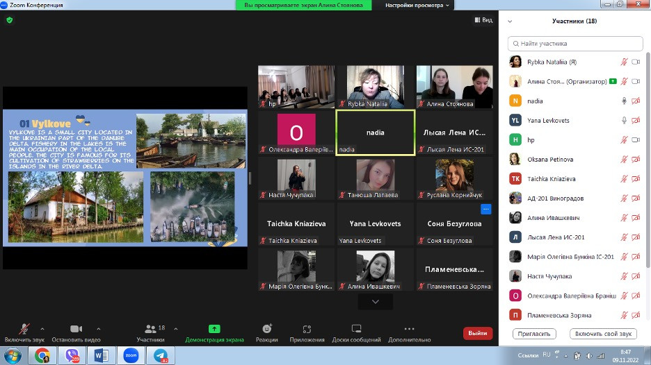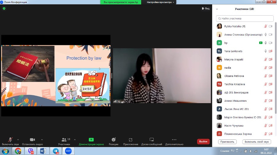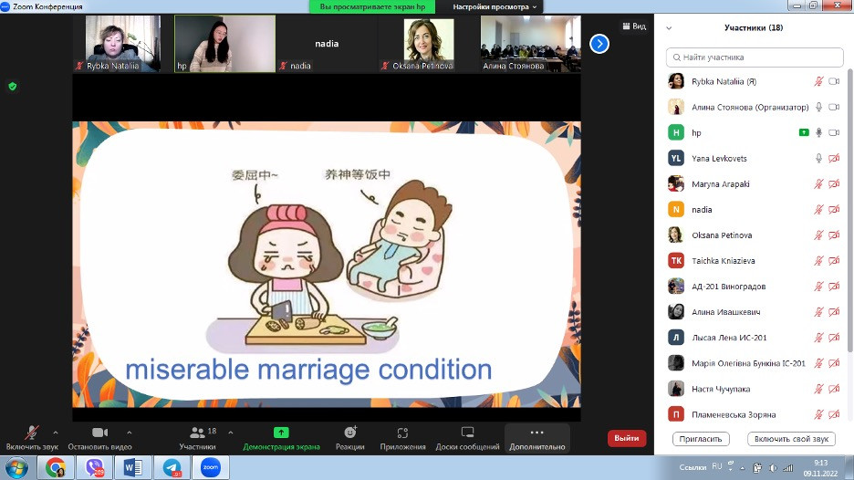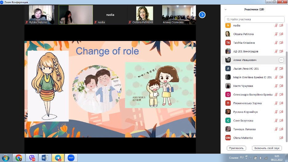 As part of the Ukrainian-Chinese educational and scientific project "Education in a globalized society: philosophy, management, culture (modern trends, economic options and international practices)" (Ushynsky University - Anhui University of Finance and Economics) on November 9, 2022, an interactive event was held " Healthy - Lifestyle". The organizers are project curators Professor Oksana Petinova and Kateryna Tkachenko. The event was attended by graduates of the first (bachelor's) level of higher education: "Secondary Education. Ukrainian language and literature", "Secondary education (history)", "Cultural studies", "Philosophy", "Management of socio-cultural activities".
