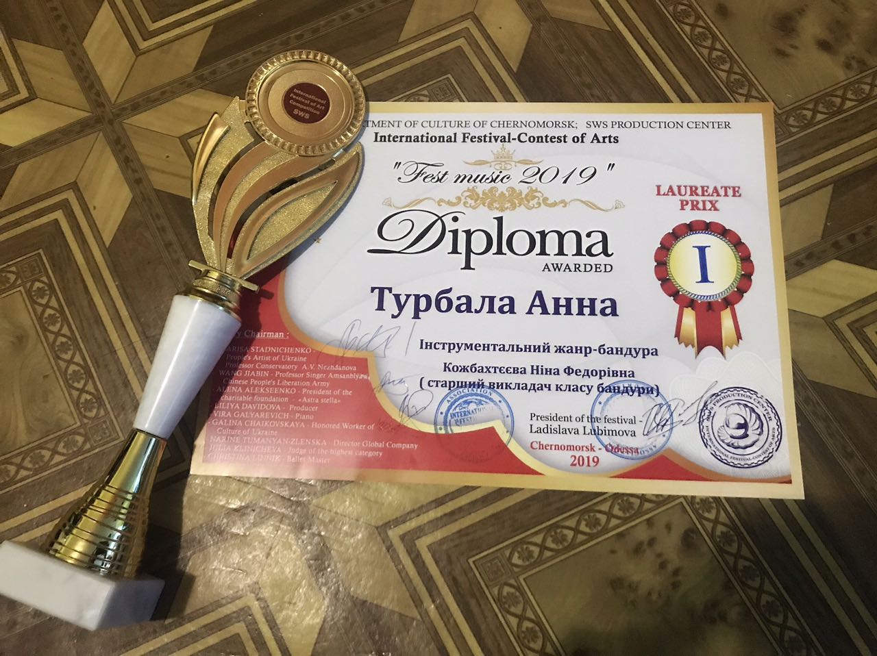 The International Festival of Arts «Fest music 2019» was held on June 5-7 in the city of Chornomorsk. The student of the 4th year of the Faculty of Music and Choreography Turbal Hanna has taken the 1st place in the nomination "Instrumental genre (bandura)". Congratulations to Anna and her coach Nina Fedirivna Kozhbacheyeva with victory and wish creative success and further achievements!