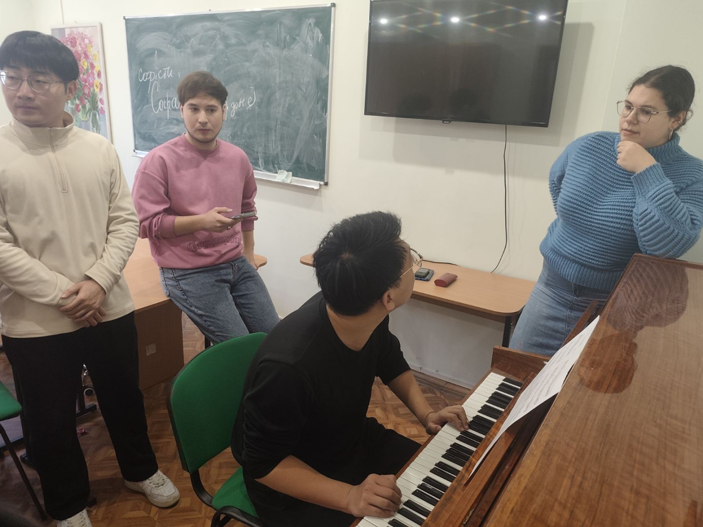 Представляємо на світлинах, як у межах наукової лабораторії «Інновації мистецької освіти» китайські аспіранти та українські здобувачі проводять свої експериментальні дослідження та творчі пошуки щодо особливостей опанування китайської художньої пісні та українського солоспіву мовою оригіналу.