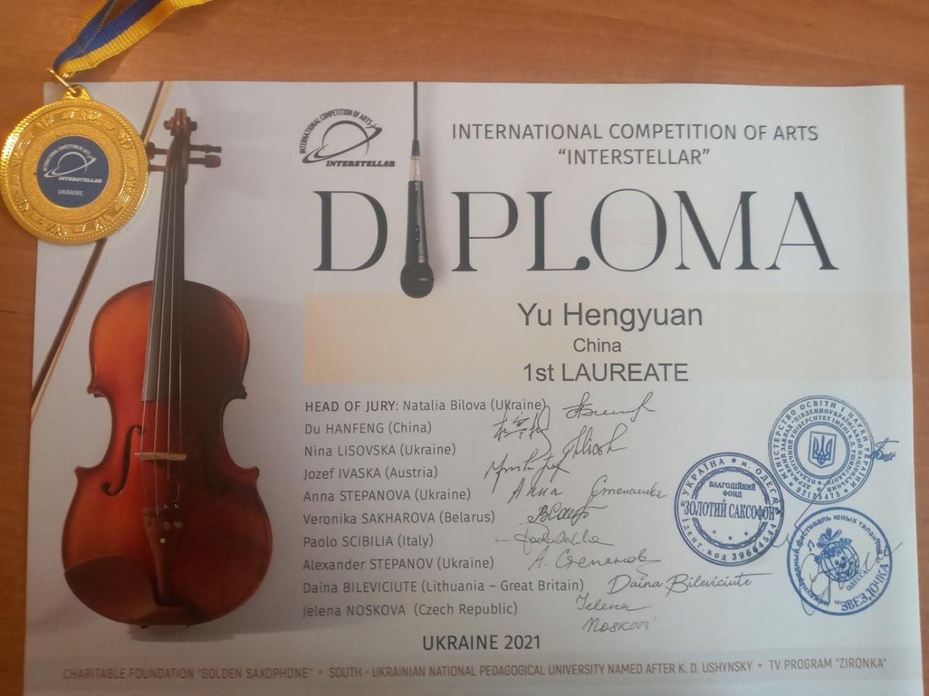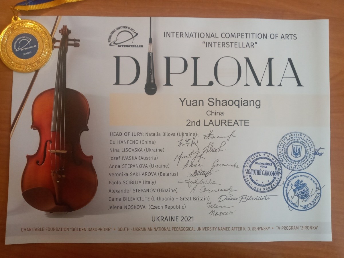 Аспіранти-учасники Міжнародного конкурсу мистецтв «INTERSTELLAR» − майбутні викладачі ЗВО, які повинні постійно «підтримувати» рівень власної виконавської майстерності, змогли підтвердити свій високий професіоналізм, гідно виступили у творчих змаганнях та здобули призові місця. 1 місце отримали Ян Пенфей, Юй Хенюань, 2 місце отримали Юйань Шаоцян, Тун Ліньге (номінація «Вокал») художній та науковий керівник, завідувач кафедри теорії музики і вокалу, професор Кьон Наталія Георгіївна.