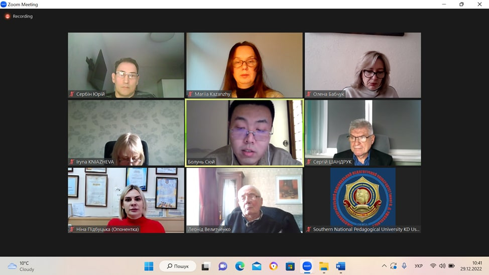 В Університеті Ушинського 29.12.2022 року на платформі Zoom відбувся успішний захист дисертації аспіранта Сюй Болунь «Детермінанти атрибутивної поведінки особистості» на здобуття наукового ступеня доктора філософії зі спеціальності 053 Психологія.