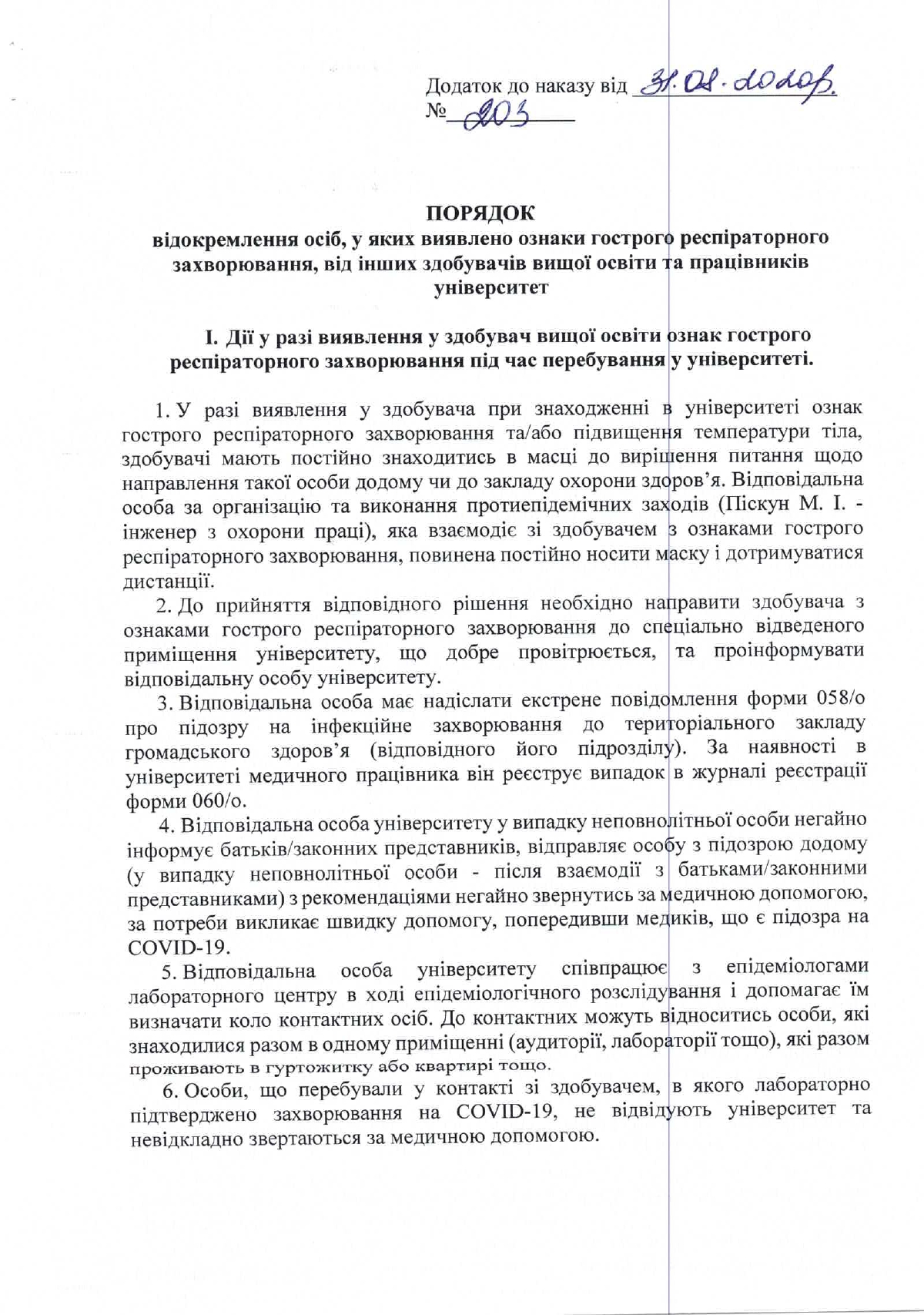 Наказ #203 від 31 серпня 2020 року
