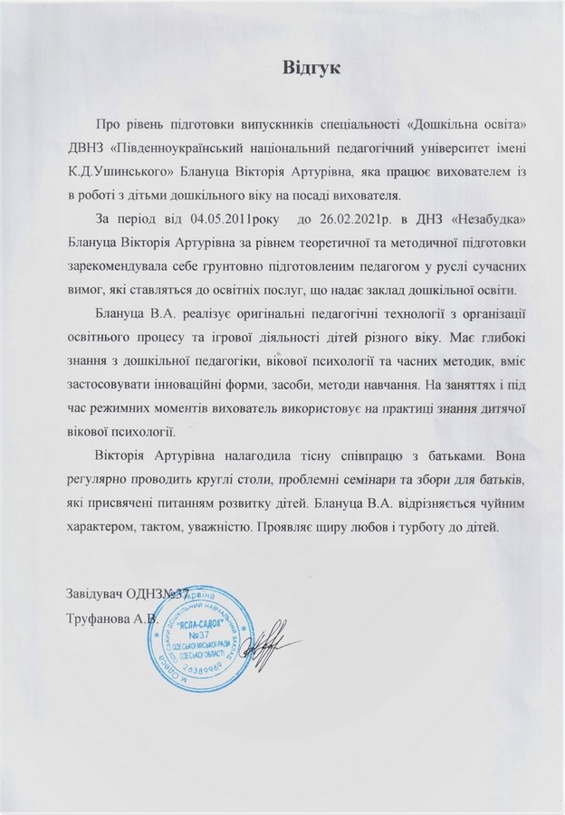 Профорієнтаційний захід за участю випускниці кафедри теорії та методики дошкільної освіти