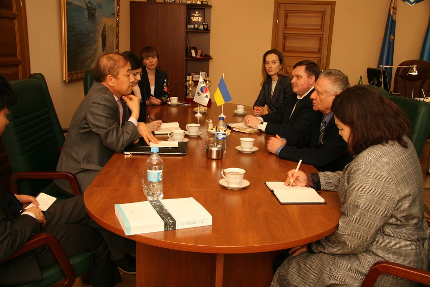 April 12, 2019, the delegation of the Embassy of the Republic of Korea in Ukraine visited the city of Odesa with an official visit. During the visit, the Ambassador of the Republic of Korea in Ukraine, Mr. Li Young-Gu, together with the Honorary Consul of the Republic of Korea in the city of Odesa, Mrs. Muzaleva-Angeloeult Darya Borysivna visited South Ukrainian National Pedagogical University named after K. D. Ushynsky.