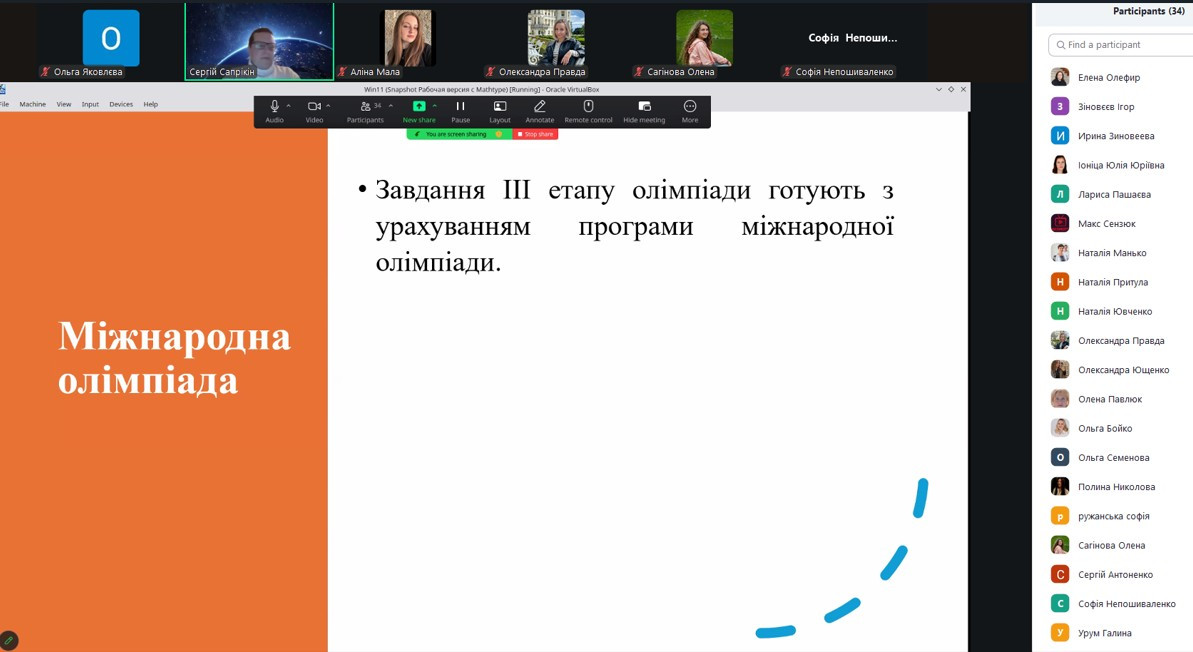 Під час лекції учасники ознайомилися зі становленням і розвитком історії предметних олімпіад в Україні та світі, дізналися про їхню роль у виявленні й підтримці талановитої молоді. Було висвітлено сучасні підходи до організації Всеукраїнських олімпіад, зміни та нововведення поточного навчального року, а також особливості проведення міжнародних предметних олімпіад.