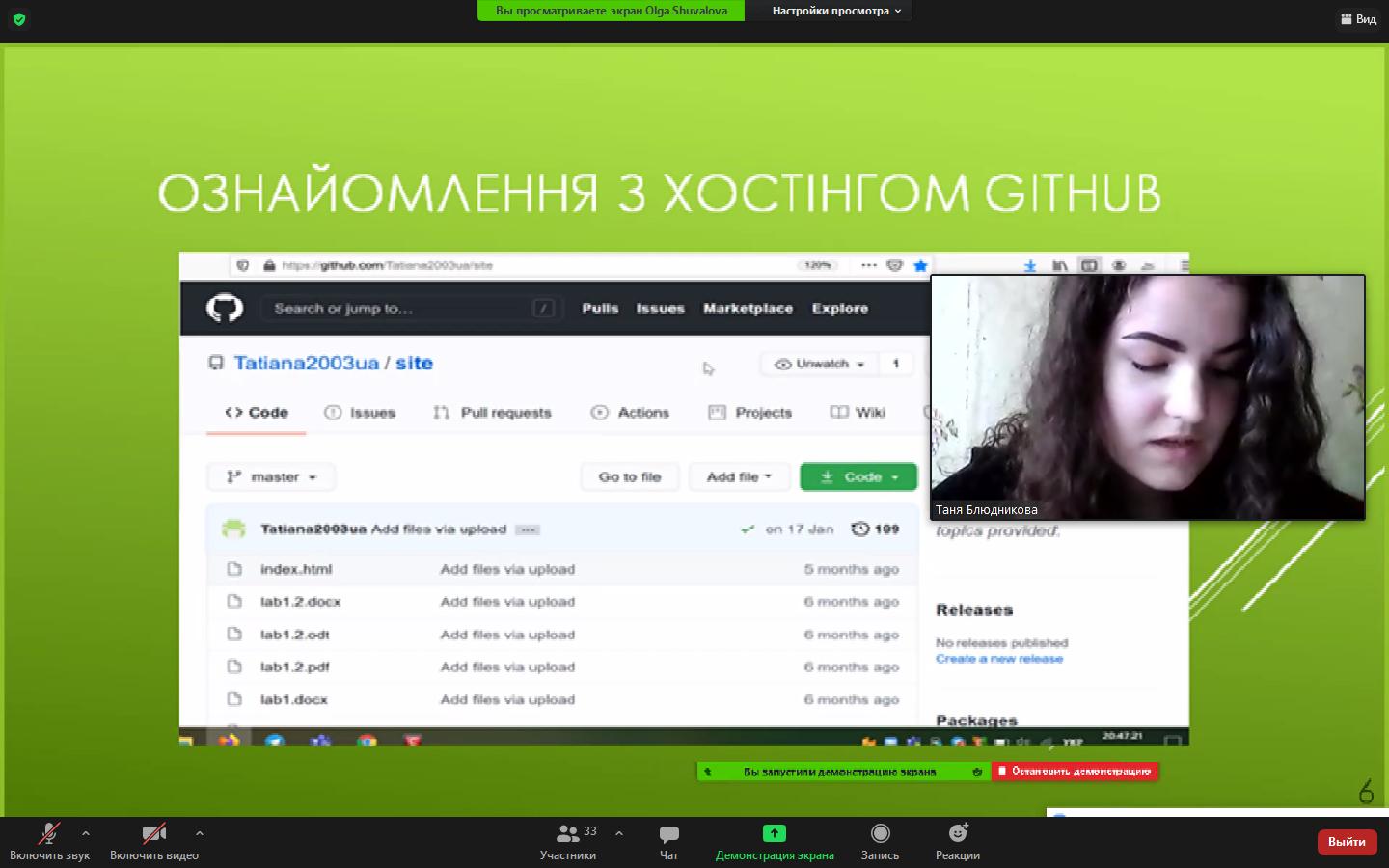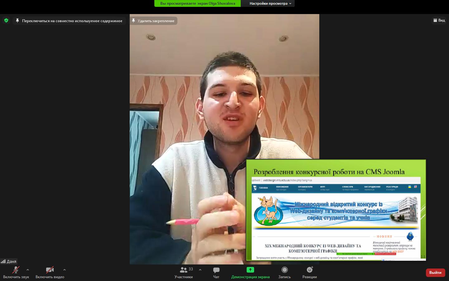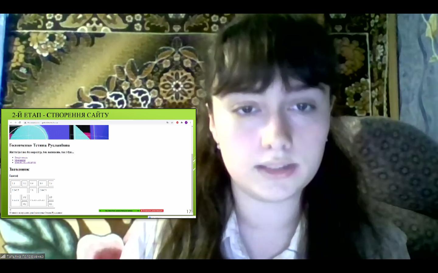 Учасники гуртка "Web-орієнтовані інформаційні системи", студенти 1 курсу фізико-математичного факультету Бєльчу Даніїл, Блюднікова Тетяна, Головченко Тетяна, Полуяктова Катерина, Королькова Дар'я представили доповідь "АДАПТИВНІ МЕТОДИ НАВЧАННЯ ТЕМИ «МОВА HTML. CSS СТИЛІ». Керівник - старший викладача кафедри прикладної математики та інформатики Шувалова Ольга Ігорівна.