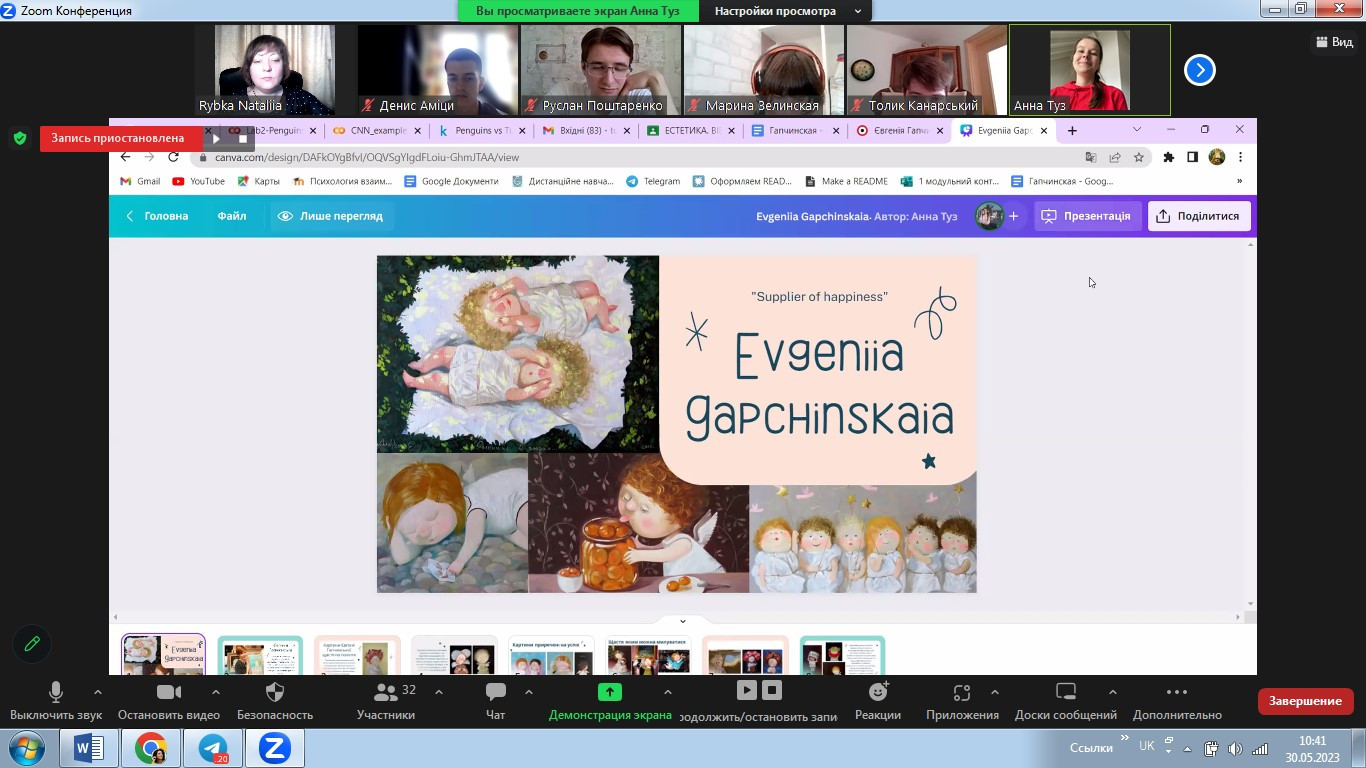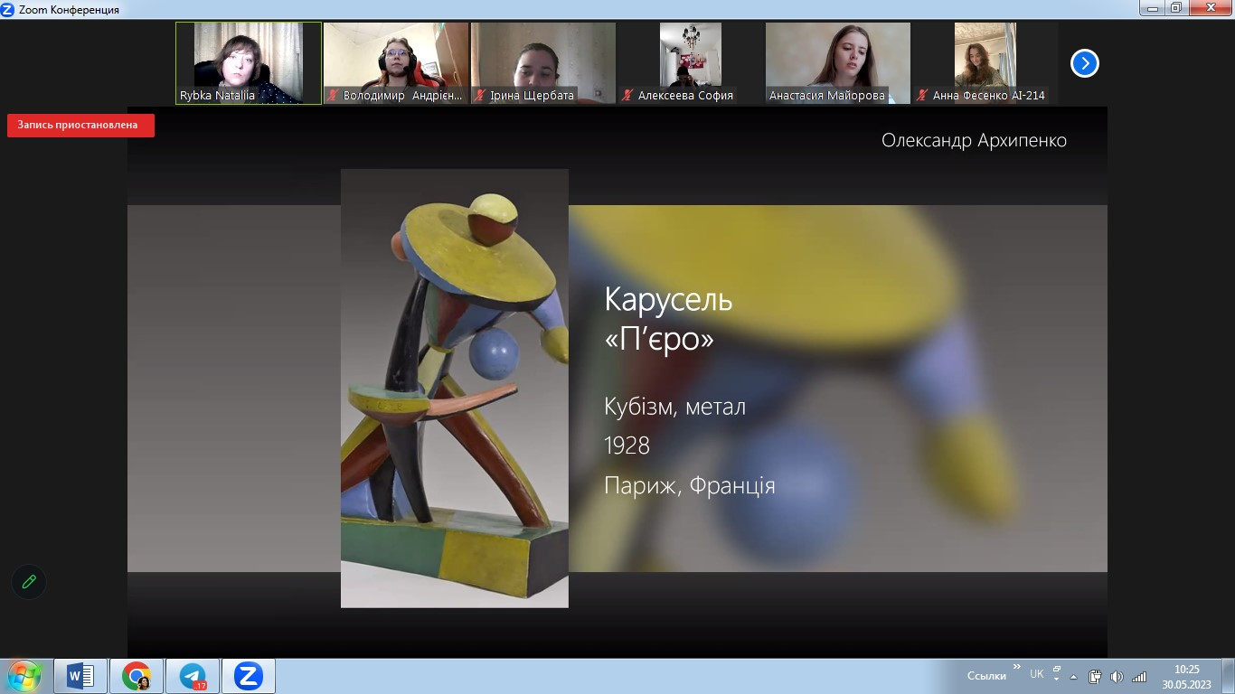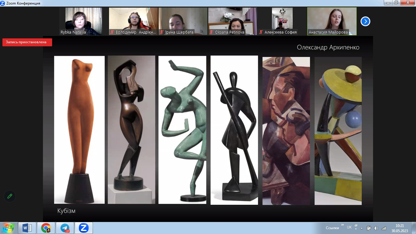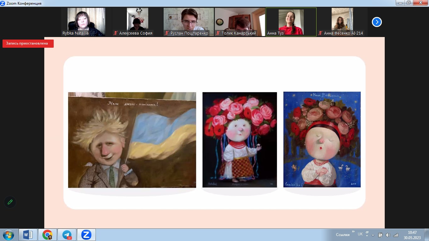 У травні 2023 року в межах реалізації договору про співпрацю між ЗВО-партерами до Дня Європи відбулося спільне засідання студентських наукових гуртків «Південноукраїнські наукові студії» (керівник – проф. Оксана Петінова) та «Філософ» (НУ «Одеська політехніка», керівник – доц. Наталія Рибка). Зустріч була спрямована на обговорення ролі та впливу українців на формування та становлення європейського мистецтва. Студенти підготували та представили на обговорення чудові презентації. Говорили про різні вили мистецтва, в тому числі про літературу, декоративно-ужиткове, сценічне, образотворче мистецтво, музику та архітектуру.