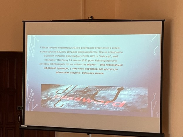 5 червня 2023 року відбулася зустріч оффлайн у форматі тренінгу "Загрози в кіберпросторі: фішинг, скам, фейкньюс; захист дітей в кіберпросторі" для здобувачів освіти 1 року навчання соціально-гуманітарного факультету та всіх бажаючих.