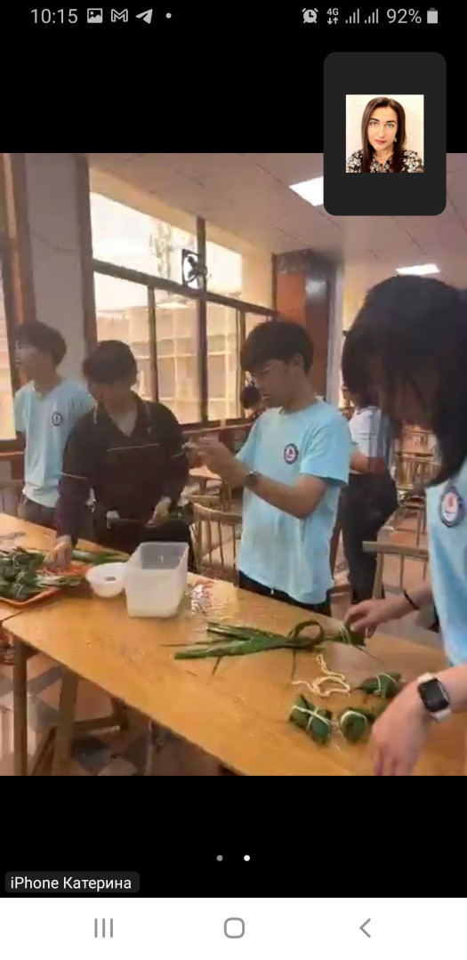Свято Драконячих човнів (端午节) вважається третім найважливішим традиційним китайським святом після китайського Нового року та свята Середини осені. Його завжди відзначають на п’ятий день п’ятого місяця за місячним календарем, тому китайці називають його днем подвійної п’ятірки. Цього року фестиваль Драконячих човнів святкують саме сьогодні, 22 червня! Цзондзи — це традиційна страва свята: галушки у формі пірамідок, зроблені із клейкого рису, наповнені різними начинками і загорнуті в листя бамбуку. Їх варять або готують на пару. Іноземні викладачі та студенти Аньхойського університету фінансів та економіки були запрошені на майстер клас з виготовлення традиційних дзондзи! В свою чергу, в рамках україно-китайського освітньо-наукового проєкту «Освіта в глобалізованому суспільстві: філософія, менеджмент, культура (сучасні тенденції, економічні опції та міжнародні практики)» НПП кафедри, студенти та аспіранти долучилися до заходу онлайн, познайомитися зі святковими традиціями та дізнатися більше про цей фестиваль.