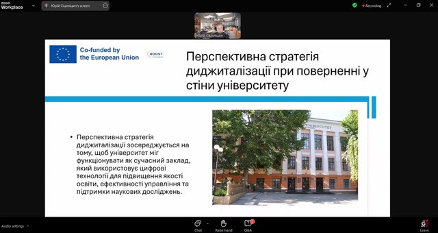 Здобувачі третього (освітньо-наукового) рівня вищої освіти ОНП «Філософія» Микола Начев та Ігор Усатюк взяли участь у вебінарі «План диджиталізації університету», що проводився в межах імплементації Erasmus+ проєкту BOOST (Bringing Opportunities and Organizational Success To Small Local Universities in Ukraine).