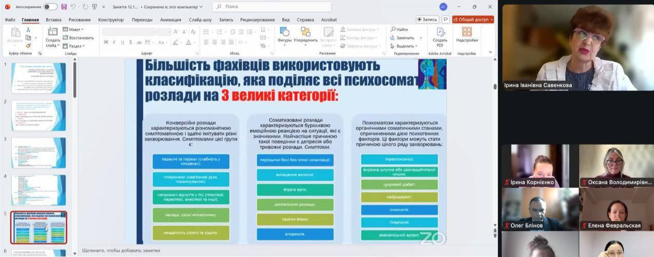12 листопада 2025 року відбулася гостьова лекція доктора психологічних наук, професора, завідувачки кафедри клінічної психології та психічного здоров’я Державного закладу «Південноукраїнський національний педагогічний університет імені К.Д. Ушинського» Ірини Іванівни Савенкової на тему «Психосоматози, сучасні напрямки діагностики та психотерапія (наукова школа лектора)». Захід було організовано у межах партнерської співпраці з ПВНЗ «Європейський університет». До участі долучилися здобувачі та науково-педагогічні працівники, для яких зустріч стала своєрідною формою професійного розвитку та підвищення кваліфікації. У межах лекції було представлено історичні засади формування одеської школи клінічної психології. Професор І.І. Савенкова висвітлила сучасні підходи до розуміння психосоматозів, діагностичні тенденції та психотерапевтичні моделі, що поєднують тілесно-орієнтовану, позитивну й хронопсихологічну методології. Захід став цінним науково-практичним досвідом для здобувачів освіти, аспірантів і викладачів, які досліджують взаємозв’язок психіки та тіла, а також сучасні напрями психотерапії у клінічній психології.