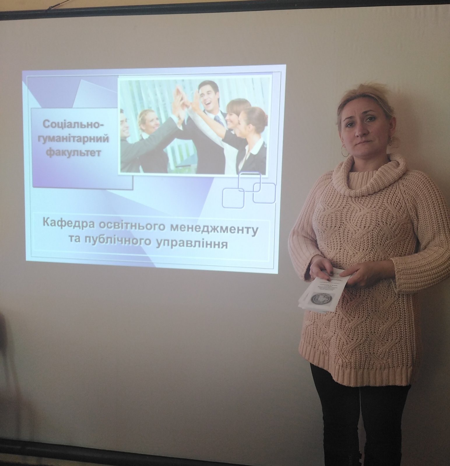 3-4 березня 2020 року для учнів 10-11 класів Йосипівської ЗОШ І-ІІІ ступенів Овідіопольського району Одеської області було проведено профорієнтаційну бесіду про особливості вступу та навчання за спеціальністю 281 Публічне управління та адміністрування. До профорієнтаційної роботи долучилася випускниця кафедри освітнього менеджменту та публічного управління Поповіченко Ірина Анатоліївна, педагог школи, яка презентувала інформаційні матеріали учням та провела роз’яснювальну бесіду.