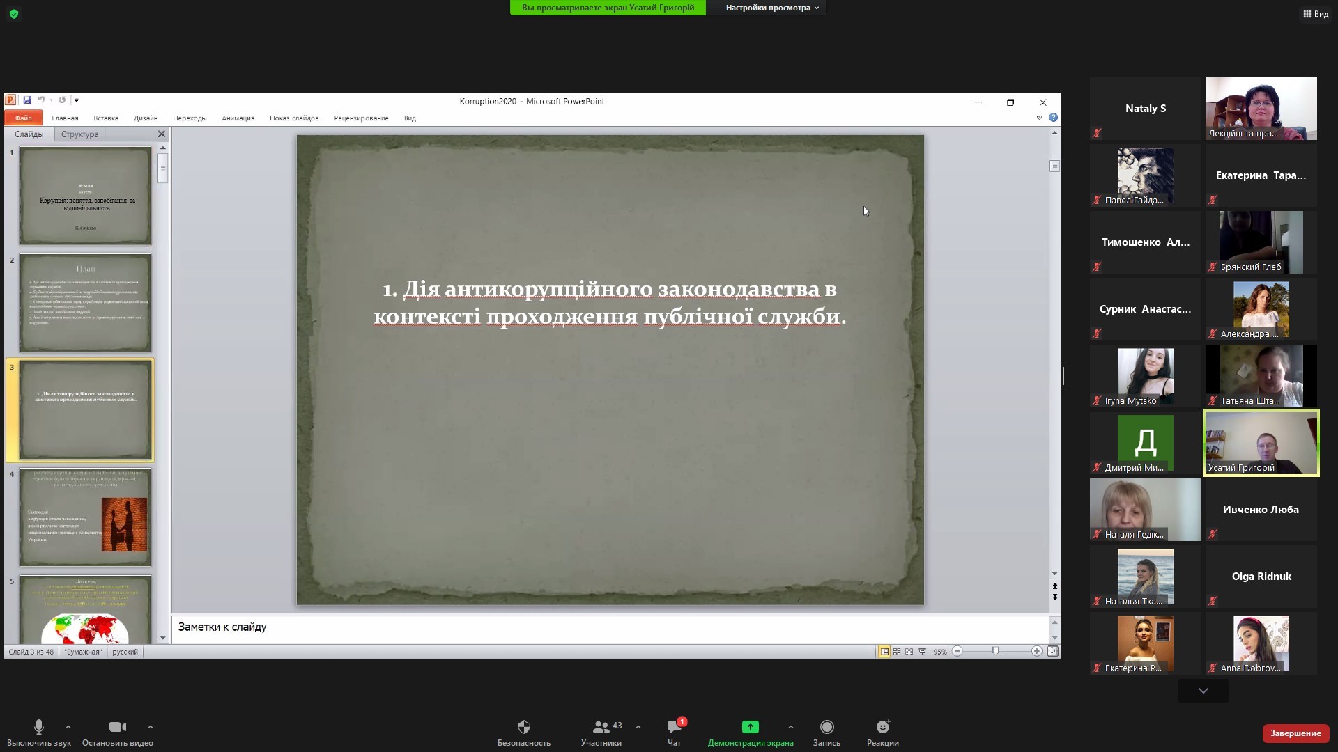 Майже дві години спілкування з справжнім фахівцем своєї справи дозволили здобувачам вищої освіти довідатися про найпотаємніші сторони антикорупційної діяльності в Україні, проблему психологічного сприйняття корупції населенням, схильність до корупції, роль держави в попередженні та провокуванні корупційних ризиків, кризу довіри до органів влади та багато іншого.