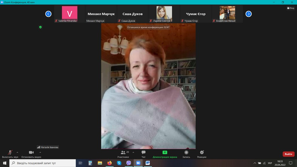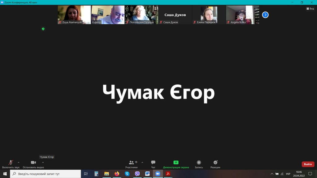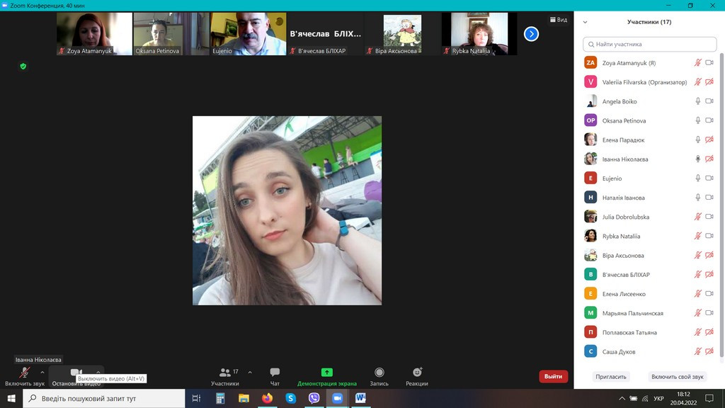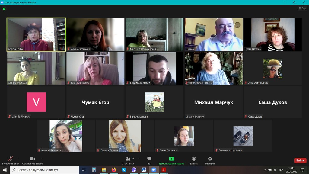 20 квітня 2022 року відбулося в он-лайн форматі обговорення проєктів ОНП та ОПП «Філософія» третього (освітньо-наукового), другого (магістерського), першого (бакалаврського) рівнів вищої освіти за спеціальністю 033 «Філософія» галузі знань 03 «Гуманітарні науки».