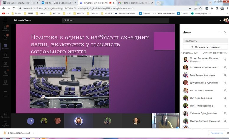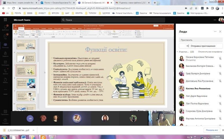 В засіданні взяли участь студенти факультету початкового навчання та факультету іноземних мов, зокрема, з презентаціями виступили Бакланова Вікторія, Граф Валерія, Дзиговська Яна, Костюк Яна, Харченко Ілля та інші. Було проаналізовано особливості економічних, освітніх, культурних, політичних соціальних інститутів, розглянуто ключові зміни інститутів в умовах воєнного стану. Засідання супроводжувалось жвавою дискусією та аналізом проблемних питань.