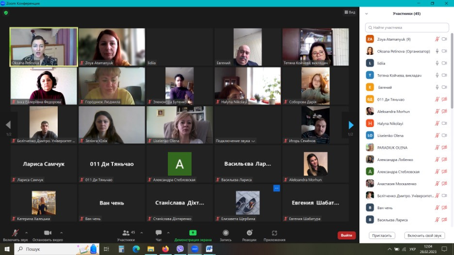 28 лютого 2023 року на запрошення гаранта ОПН Філософія проф. Оксани Петінової в межах реалізації україно-китайського освітньо-наукового проєкту «Освіта в глобалізованому суспільстві: філософія, менеджмент, культура (сучасні тенденції, економічні опції та міжнародні практики)» відбулася зустріч на тему «Бренд науковця в науковому середовищі Сходу».