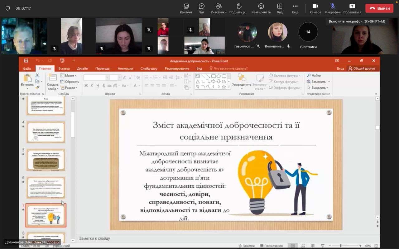 16 березня завідувач кафедри професор Долженков О.О. провів круглий стіл «Академічна доброчесність: виклики сучасності», на якому було розглянуто питання визначення та змісту академічної доброчесності, механізми виявлення фактів академічної недоброчесності, що діють в Університеті Ушинського, та відповідальності за них.