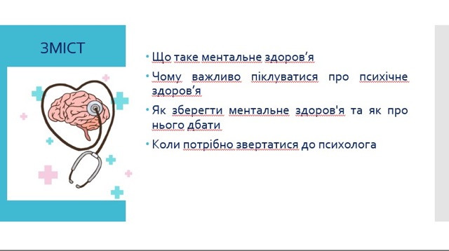 Ведуча заходу, кандидат психологічних наук, старший викладач кафедри загальної та диференціальної психології Ульянова Т.Ю. На зустрічі учасники познайомилися з поняттям ментального здоров’я, його ознаками і базовими елементами. Майбутні психологи дізнались про чинники, що здійснюють деструктивний вплив на стан благополуччя людини і наслідки порушення ментального здоров’я. Розглянули заходи щодо профілактики порушення ментального здоров’я. Зробили вправи-медитації, та кожний з учасників заходу зміг відчути вплив і зміни у відчуттях, стані тіла, і поміряти рівень особистого ментального здоров’я.