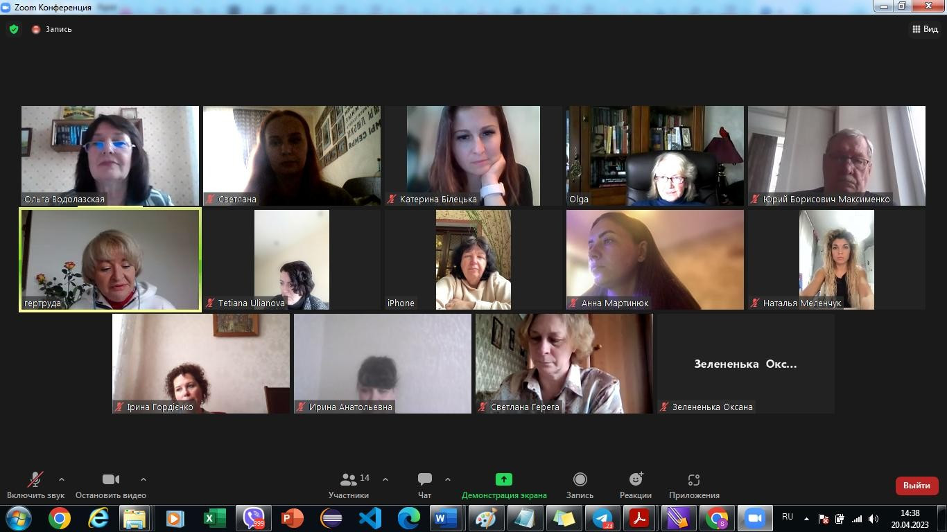 2Задля удосконалення якості підготовки магістрів 20 квітня 2023 року кафедрою загальної та диференціальної психології організовано онлайн - зустріч проєктної групи з оновлення та супроводу освітньо-професійної програми «Практична та прикладна психологія» підготовки фахівців другого (магістерського) рівня вищої освіти за спеціальністю 053 «Психологія» у складі: гаранта програми канд. психол. наук, доцента кафедри загальної та диференціальної психології О.О.Водолазської; робочої групи у складі: завідувачки кафедри загальної та диференціальної психології, доктора психол. наук, професора О.П.Саннікової, доктора психол. наук, професора Ю.Б.Максименка, канд. психол. наук, доцента кафедри загальної та диференціальної психології Н.І.Меленчук зі стейкхолдерами : президентом Асоціації «Психея» (м. Одеса) Гертрудою Вікторівною Шпатаковською, директором Комунальної Установи «Одеський інклюзивно-ресурсний центр №5 Світланою Олександрівною Герегою, а також з роботодавцем канд. психол. наук, директором психологічного консультативного Центру Оленою Миколаївною Гайворонською. На зустрічі присутніми були викладачі кафедри (доц. Ю. Г. Черножук, ст.викл. І. О. Гордієнко, доц. Т. Ю. Ульянова, доц. О. А. Оріщенко, доц. І. А. Василенко, лаборант О. І. Зелененька) та здобувачі вищої освіти за спеціальністю 053 Психологія за другим (магістерським) рівнем першого та другого року навчання. Під час зустрічі присутні виявили зацікавленість, відзначивши необхідність і унікальність освітньо-професійної програми «Практична та прикладна психологія». Зокрема, практично, усі доповідачі у своїх висловлюваннях звертали увагу на те, що ОПП «Практична та прикладна психологія» усім своїм змістом спрямована на здійснення психологічної допомоги різним категоріям населення у воєнний та повоєнний час. Знання, які отримуватимуть здобувачі за вивченням обов’язкових та вибіркових дисциплін, будуть сприяти оволодінню компетентним прийняттям фахових рішень у складних і непередбачуваних умовах реальності та спрямованості на розбудову нашої країни після війни. За висловлюваннями стейкхолдерів, освітньо-професійна програма є фундаментальною базою у підготовці практичних психологів, які, оволодівши навичками та вміннями практичної роботи в системі соціально-психологічної служби, консультативно-корекційної індивідуальної та групової професійної діяльності, зможуть самостійно надавати суспільству психологічну допомогу: на підприємствах, у організаціях, психологічних центрах, у приватній практиці тощо. Особливо важливим під час бесіди був момент акцентування уваги присутніх на тому, що в реалізації змісту освітньої програми використовуються доробки наукової школи доктора психологічних наук, професора О.П.Саннікової «Психологія індивідуальних відмінностей (індивідуально-психологічні особливості особистості)». Онлайн – зустріч членів кафедри загальної та диференціальної психології, здобувачів вищої освіти другого (магістерського) рівня та стейкхолдерів з приводу обговорення проєкту освітньо-професійної програми «Практична і прикладна психологія» пройшла дружньо та продуктивно.