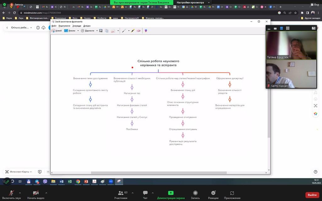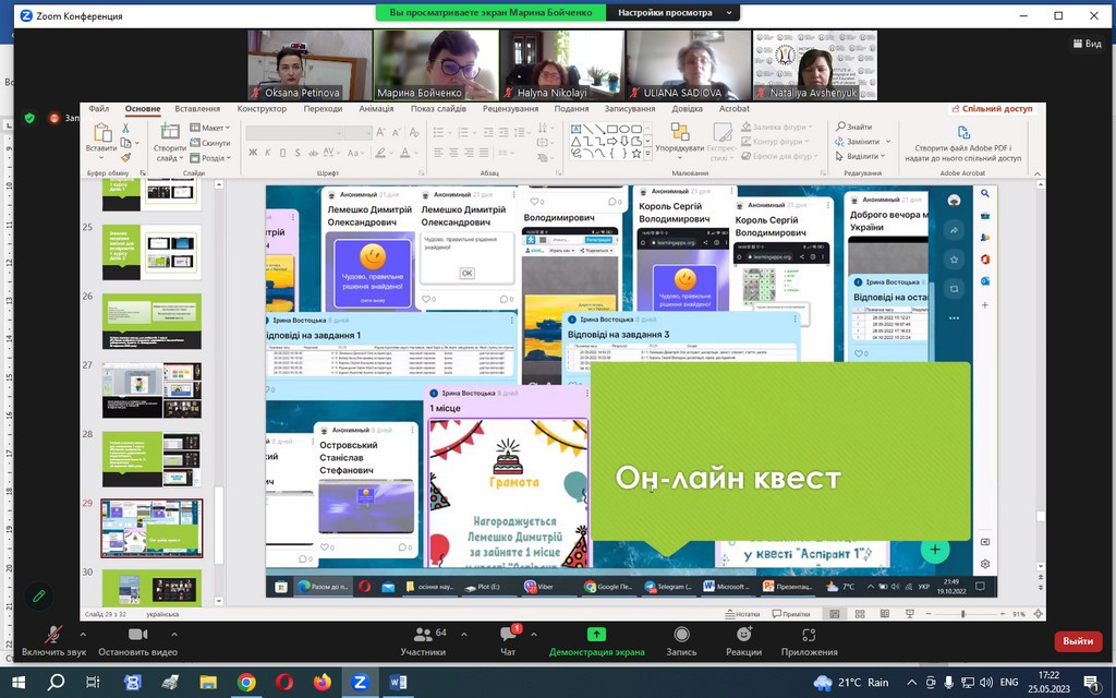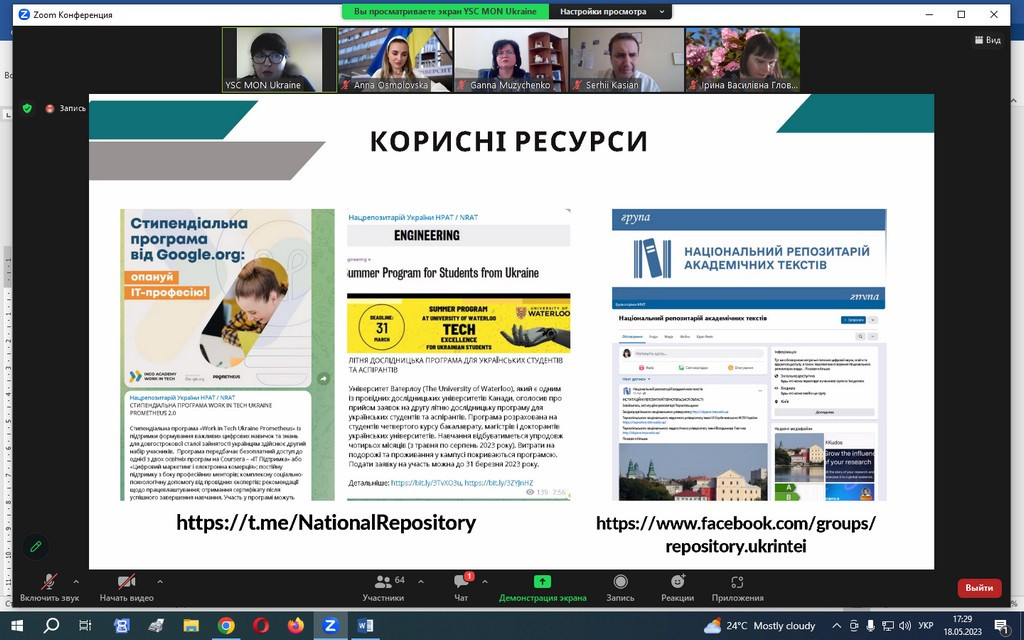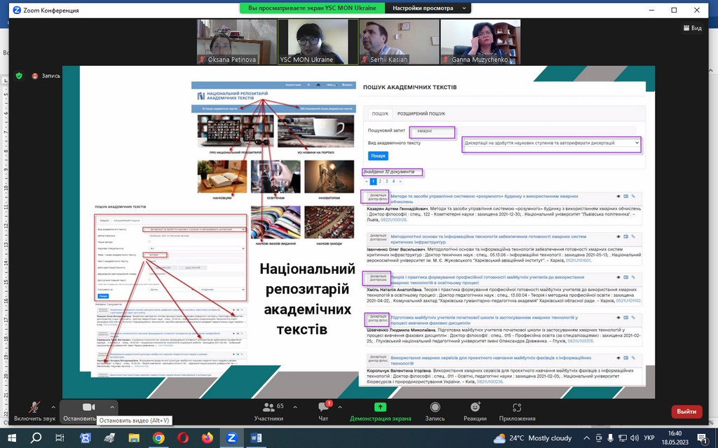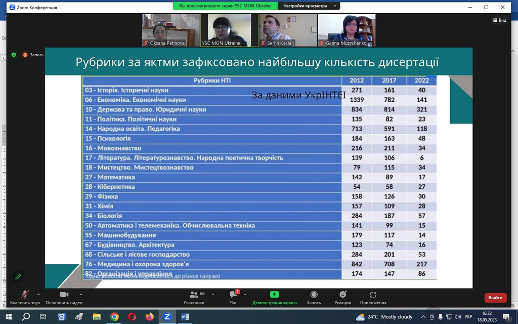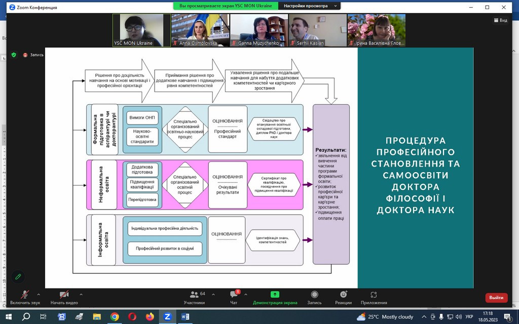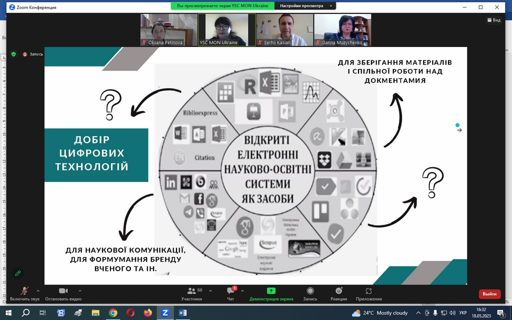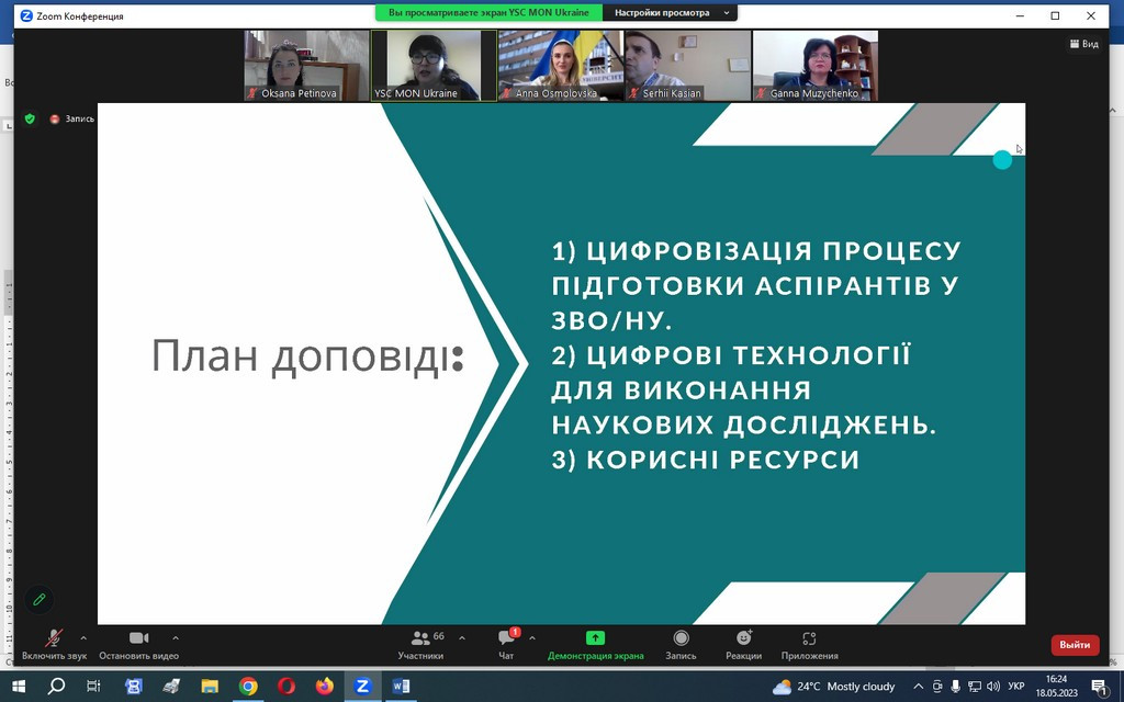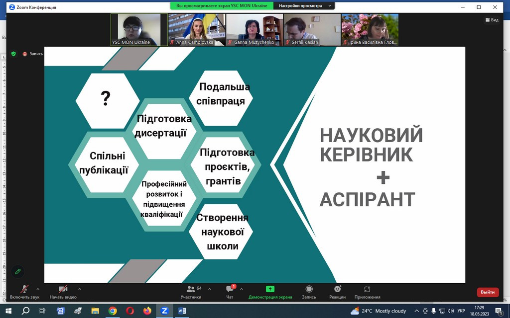 Наукові керівники здобувачів третього (освітньо-наукового) рівня вищої освіти ОНП «Філософія», НПП кафедри філософії, соціології та менеджменту соціокультурної діяльності (проф. Олена Лісеєнко, проф. Оксана Петінова, доц. Зоя Атаманюк, доц. Галина Врайт та інші), учасники програми підвищення кваліфікації «Інноваційний науковий керівник» мали можливість опрацювати ряд важливих тем. Спікерами наступних модулів були: проф. Тетяна Вакалюк, доктор пед. наук, професор кафедри інженерії програмного забезпечення ДУ «Житомирська політехніка», провідний науковий співробітник Інституту цифровізації НАПН України; Анна Яцишин, доктор пед. наук, провідний науковий співробітник Інституту цифровізації НАПН України, координатор Офісум підтримки вченого; проф. Наталія Авшенюк, доктор пед. наук, завідувач відділу зарубіжних систем педагогічної освіти та освіти дорослих Інституту педагогічної освіти і освіти дорослих імені Івана Зазюна НАПН України, членкиня Національного агенства із забезпечення якості вищої освіти; проф. Марина Бойченко, доктор пед. наук, завідувач кафедри педагогіки Сумського державного педагогічного університету імені А. С. Макаренка; Катерина Годлевська, кандидат пед. наук, старший науковий співробітник відділу зарубіжних систем педагогічної освіти і освіти дорослих Інституту педагогічної освіти і освіти дорослих імені Івана Зазюна НАПН України. Говорили про підготовку докторів філософії та наукову супервізію, розглядали ключові тренди зарубіжного освітнього простору; аналізували досвід докторських шкіл, підходи до організації та адміністрування з урахуванням кращих зарубіжних практик. Особливий інтерес у слухачів викликало обговорення проблеми обробки та візуалізації даних в науковій діяльності за допомогою ІКТ та використання цифрових технологій й інструментів відкритої науки для виконання наукового дослідження і колективної роботи науковців. Завершенням програми підвищення кваліфікації став круглий стіл, в рамках якого всі учасники висловили свої враження, поділилися рефлексіями, пропозиціями, перспективами бачення подальшого розвитку проєкту.
